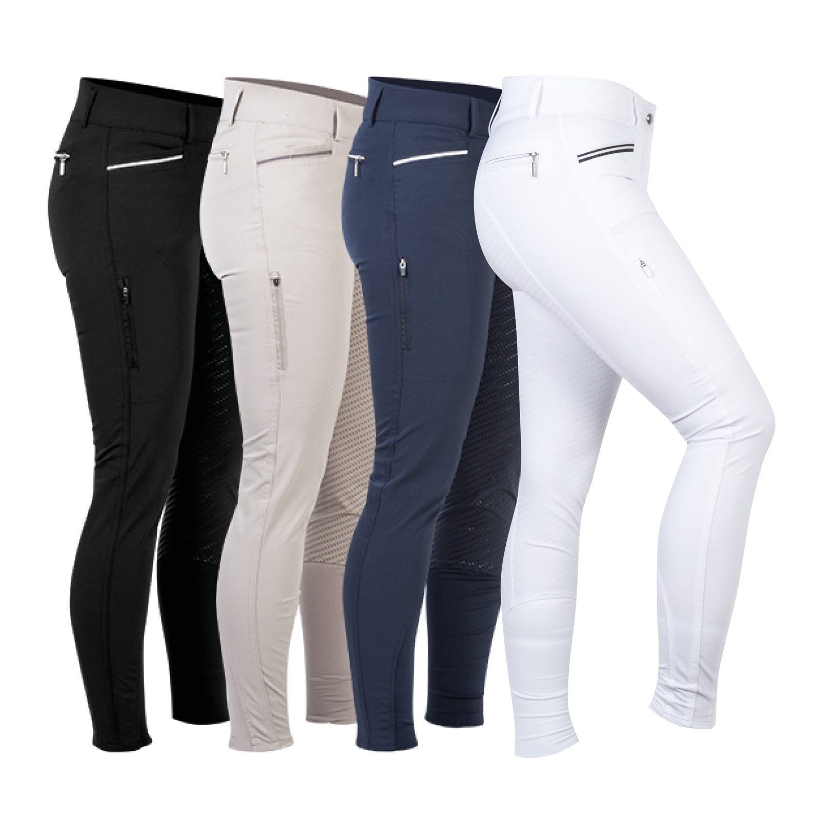 Velmi příjemné dětské rajtky s celogripovým sedem. Praktický je výrazně zvýšený pas vzadu, který ochrání bedra proti ofouknutí. Uvnitř pasu je grip, ten zajistí, že se vám zastrčené tričko nebude vytahovat, vzhled tak bude i při pohybu vždy perfektně upravený. Co určitě oceníte, je velmi pružný a přizpůsobivý materiál, který kopíruje vaše pohyby. Rajtky se skvěle hodí na jaro, léto i podzim. Pro drobnosti můžete využít dvě přední otevřené kapsy, na telefon je určená kapsa na zip na pravém stehně, zadní kapsa na zip je pouze ozdobná. Zakončení nohavic je také z pružného a jemnějšího materiálu, díky tomu se snadno oblékají a perfektně sedí pod vysokými jezdeckými botami. Celogripový sed vám dodá v sedle příjemnou stabilitu.