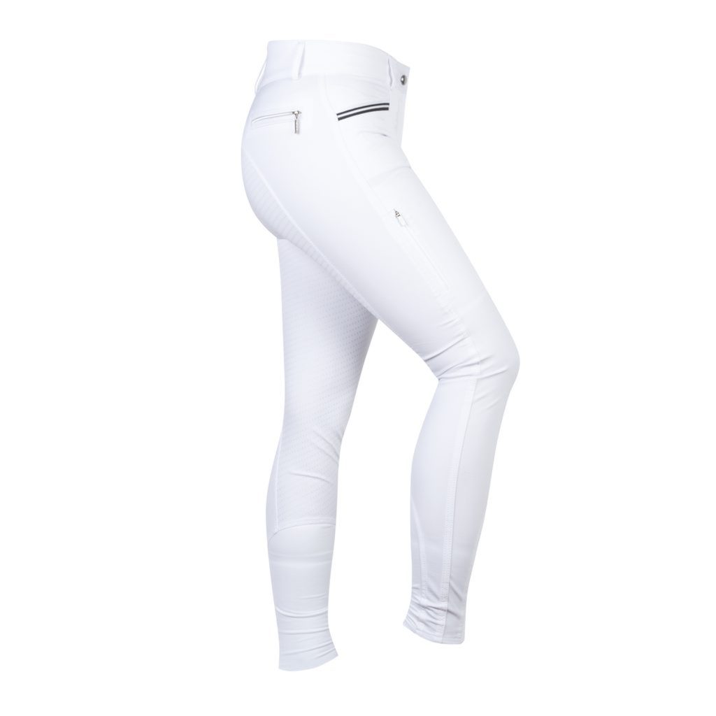 Velmi příjemné dětské rajtky s celogripovým sedem. Praktický je výrazně zvýšený pas vzadu, který ochrání bedra proti ofouknutí. Uvnitř pasu je grip, ten zajistí, že se vám zastrčené tričko nebude vytahovat, vzhled tak bude i při pohybu vždy perfektně upravený. Co určitě oceníte, je velmi pružný a přizpůsobivý materiál, který kopíruje vaše pohyby. Rajtky se skvěle hodí na jaro, léto i podzim. Pro drobnosti můžete využít dvě přední otevřené kapsy, na telefon je určená kapsa na zip na pravém stehně, zadní kapsa na zip je pouze ozdobná. Zakončení nohavic je také z pružného a jemnějšího materiálu, díky tomu se snadno oblékají a perfektně sedí pod vysokými jezdeckými botami. Celogripový sed vám dodá v sedle příjemnou stabilitu.