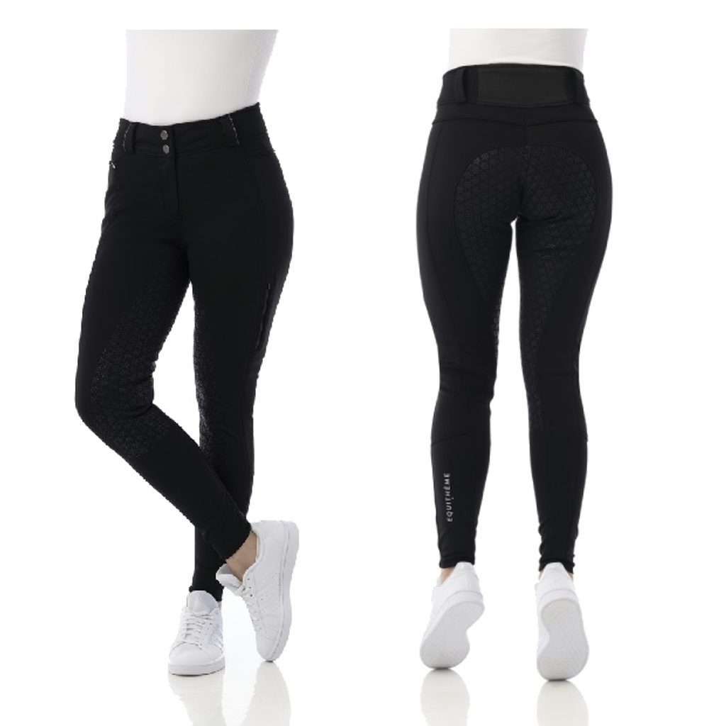 Rajtky s celosilikonovým gripovým sedem pro lepší přilnavost a stabilitu v sedle. Rajtky jsou nepromokavé, odolné a pohodlné. Díky širokému pasu přes bedra nehrozí ofouknutí zad. Kalhoty mají klasický střih. Neviditelná kapsa na boku u okraje pasu a kapsa na telefon na levé noze. Skvělé pro využití během chladnějšího období roku.
