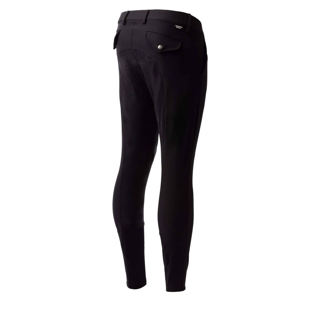 Celogripový sed poskytuje spolehlivou stabilitu v sedle bez omezení pohybu. Elastické zakončení nohavic se hladce přizpůsobí lýtku i kotníku a perfektně sedí pod vysokými jezdeckými botami. Středně vysoký pas a čistý design bez záhybů podtrhují sportovní a elegantní vzhled.