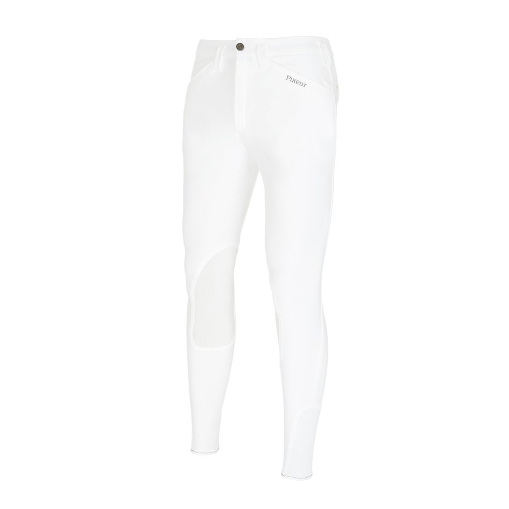 Pánské bílé závodní rajtky s kolenním gripem. Díky vysokému podílu bavlny zajistí příjemný pocit. Materiál je pevný, ale zároveň pružný. Nohavice zakončují elastické vsadky, které usnadňují oblékání a skvěle sedí pod vysokými jezdeckými botami. Pas je doplněn o poutka na opasek. Dvě otevřené přední kapsy a dvě zadní kapsy na knoflík. Grip v oblasti kolen přispívá k příjemné stabilitě v sedle.