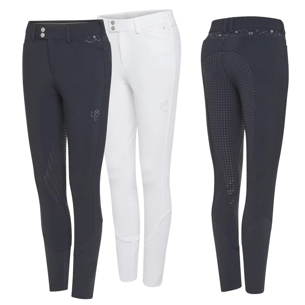 Tyto rajtky jsou ušity z mimořádně pohodlného materiálu, který je dokonale elastický všemi směry. Přináší optimální svobodu pohybu a vynikající výkon. Technologie regulace tělesné teploty odvádí vlhkost od pokožky. Excelentní stabilitu v sedle poskytne šestivrstvý silikonový grip. Jemný a ženský vzhled zajistí kombinace výšivky tón v tónu s krystaly Swarovski.