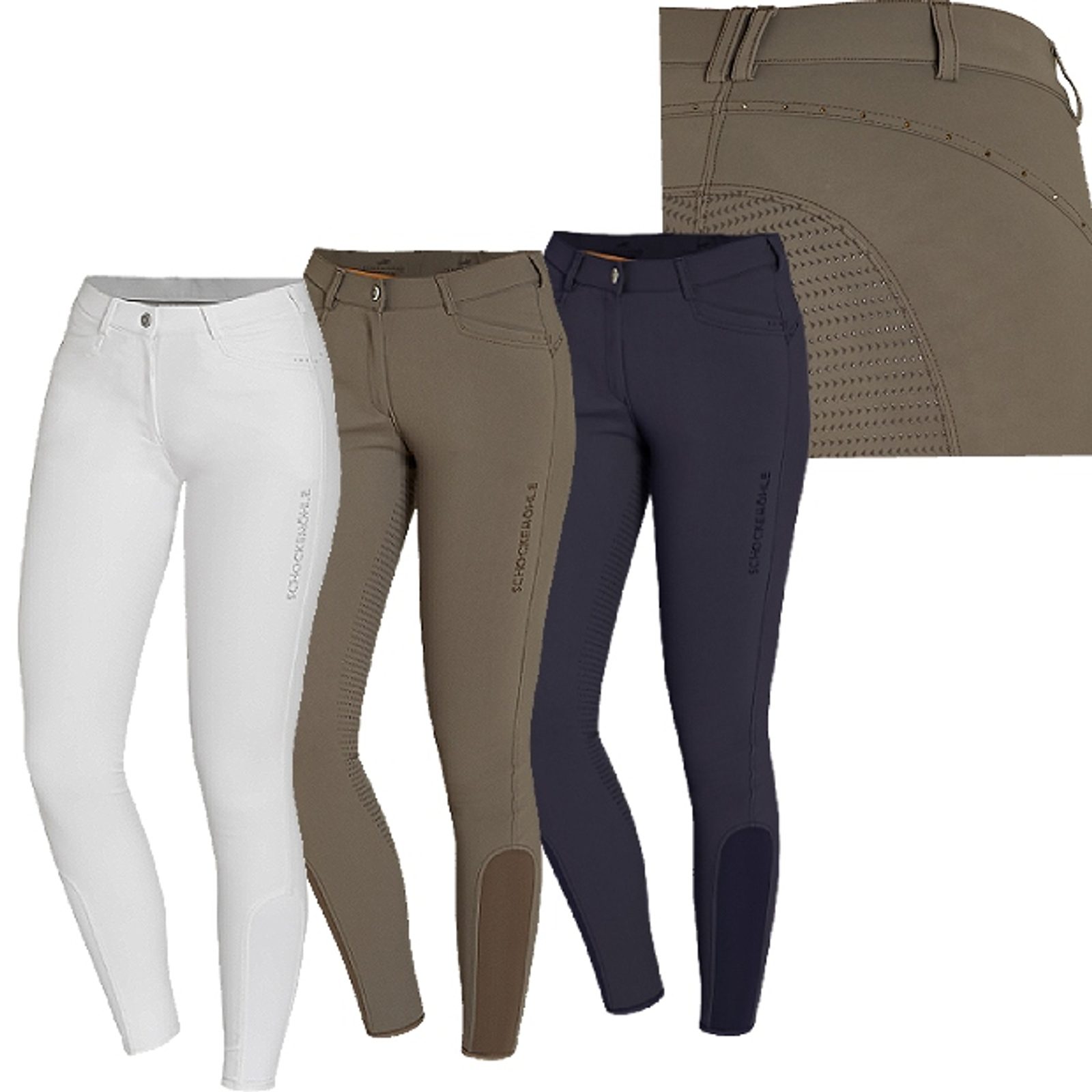 Jezdecké kalhoty, které jsou velmi vhodné i do vysokých teplot díky svým funkčním vlastnostem. Kalhoty jsou z lehké a prodyšné tkaniny. Materiál dobře pracuje s vlhkostí a účinně ji odvádí. Integrovaná UV ochrana. Silikonový grip poskytuje oporu v sedle. Jemné zdobení kamínky - decentní a elegantní.