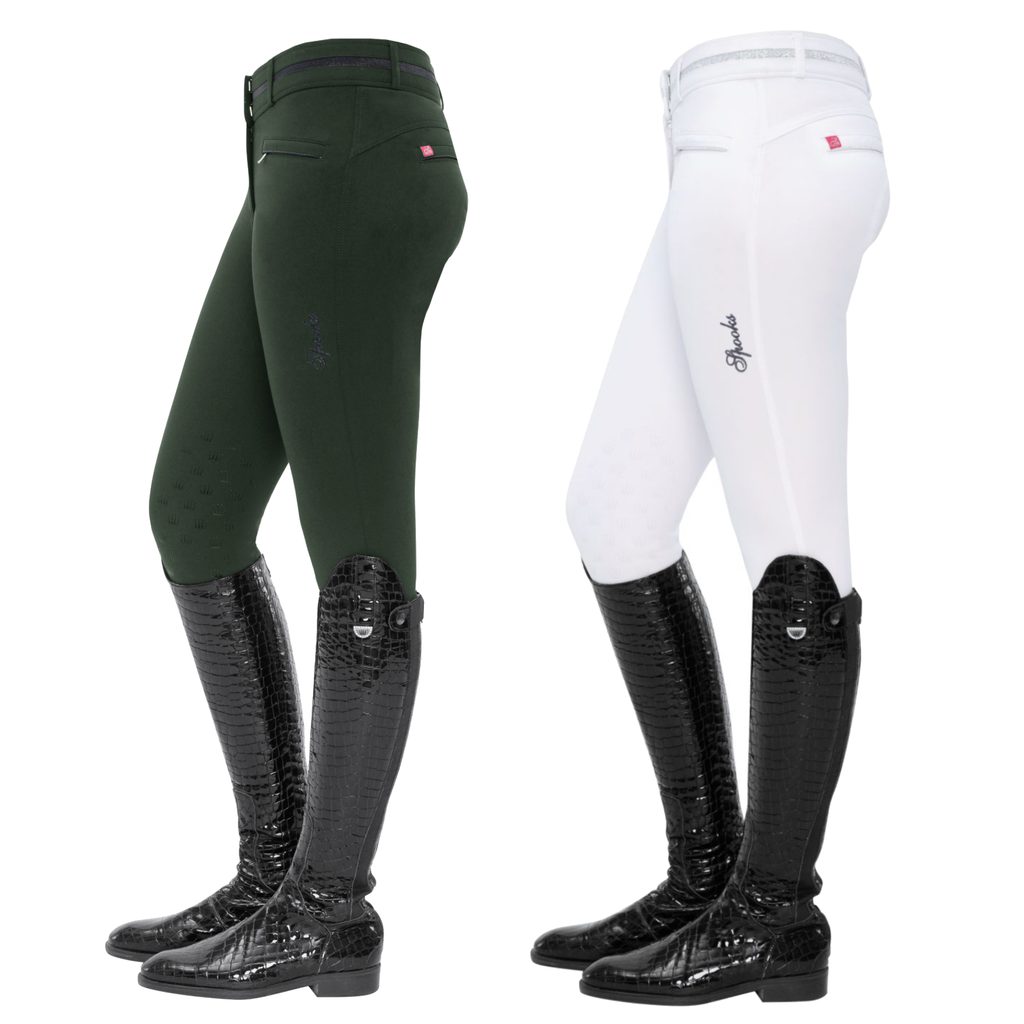 Velmi pohodlné a elegantní rajtky od značky Spooks s elastickými manžetami na nohavicích. Rajtky mají dvě uzavíratelné kapsy na přední straně a ozdobné zadní falešné kapsy. Pas je mírně vyšší, elastický a ponechává prostor pro jakýkoli opasek a perfektně sedí. Kvalitní grip na kolenou zajišťuje pevné usazení v sedle.
