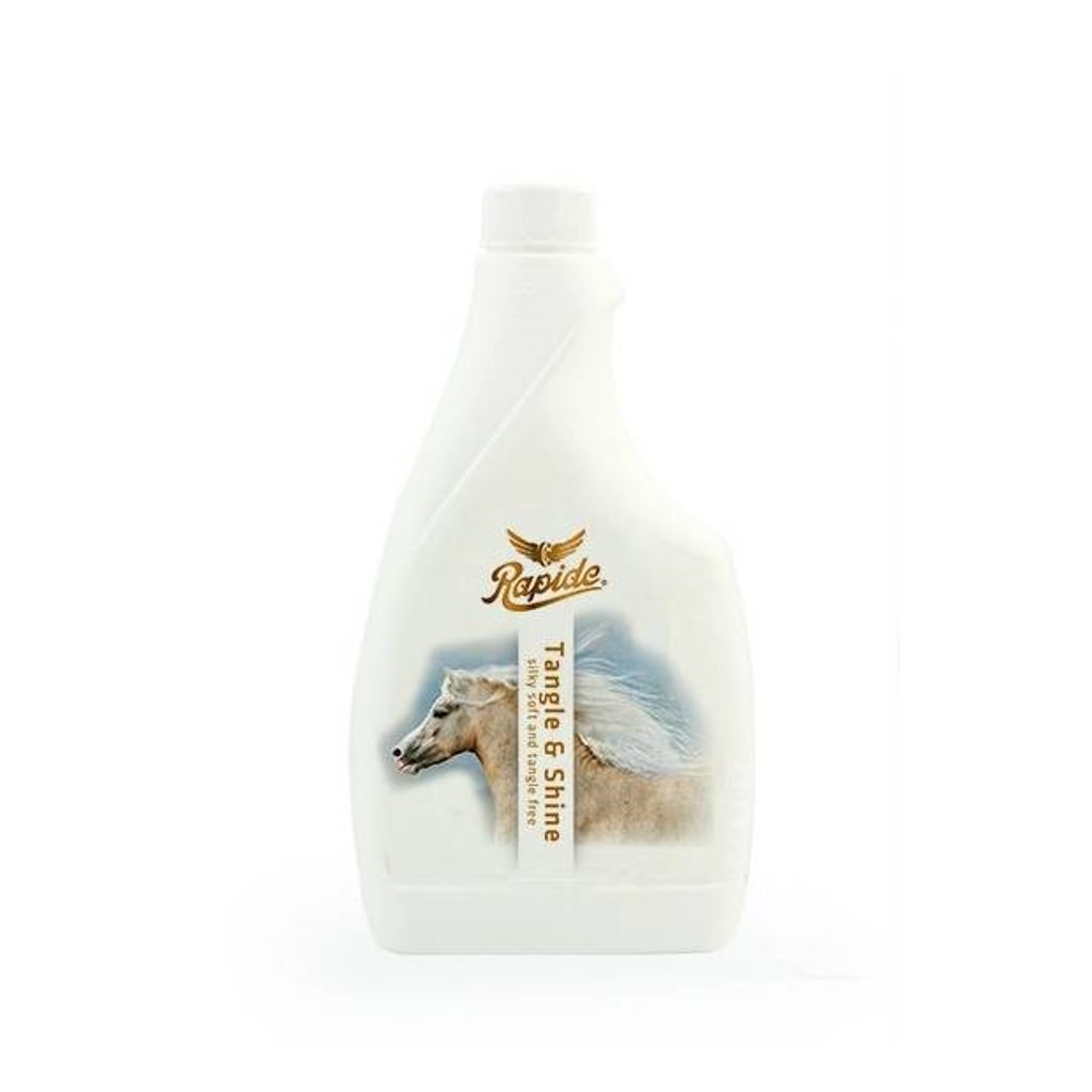 Rapide Tangle and Shine čistí a pečuje o hřívu, ocas a srst vašeho koně. Odpuzuje špínu a udržuje ošetřené části nádherně lesklé. Hříva a ocas se velmi dobře rozčesávají a nezacuchávají se, jsou hedvábně jemné a lesklé. Varianta Rapide Tangle and Shine with Glitters - Gold a Silver dodá hřívě a ocasu vašeho koně ještě výraznější třpytivý lesk.