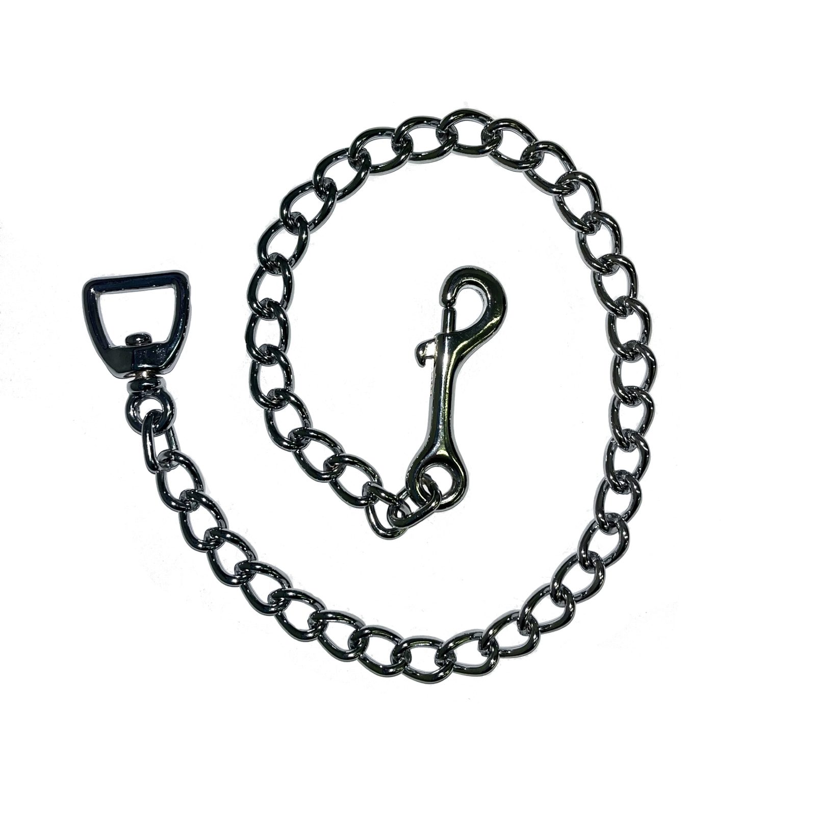 Vodítko k němu lze připnout velmi jednoduchým způsobem. Je vyroben ve stříbrné barvě. Délka je 62 cm, celková délka včetně karabiny 76 cm.