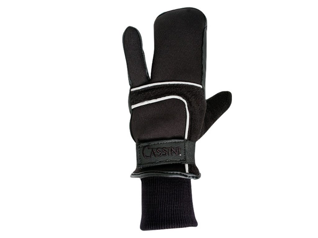 Komfortní termo rukavice /typ tříprstové palčáky/ kombinující různé typy materiálů. Jsou vyrobené z protiskluzově upravené syntetické kůže na dlani, neoprenu a fleecu na hřbetě ruky. Termoizolační vrstva Thinsulate, zapínání na zápěstí na suchý zip a dlouhý náplet zvyšují tepelný komfort . Barva: černá. Velikosti: XS - XXL. Exkluzivní výroba pro nás přímo od výrobce pod značkou Cassini.