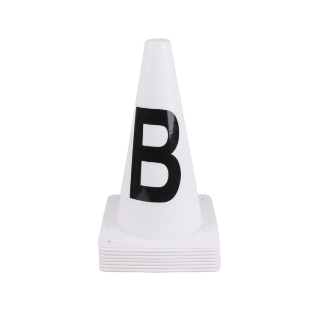 Praktické kužely s písmeny na vytvoření drezurního obdélníku. Kužely jsou lehké a snadno se s nimi manipuluje. Kuželů je 8 s písmeny A, F, B, M, C, H, E, K. Mají předvrtané díry pro případné upevnění pomocí kolíků.