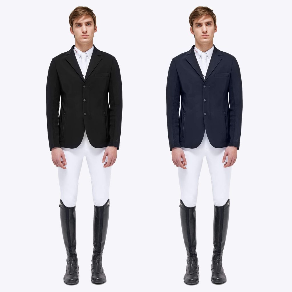 Lehké pánské jezdecké závodní sako s límcem z alcantary, vyrobené z lehkého technického žerzeje