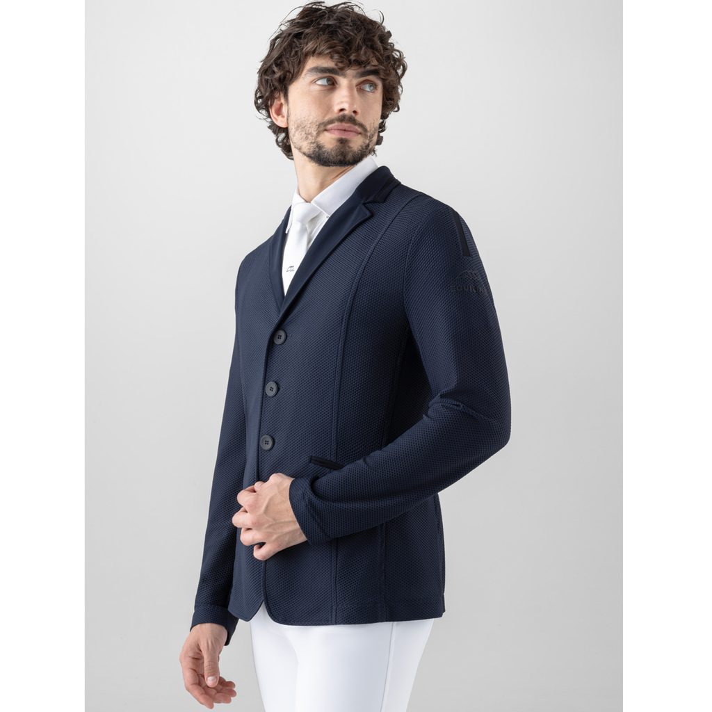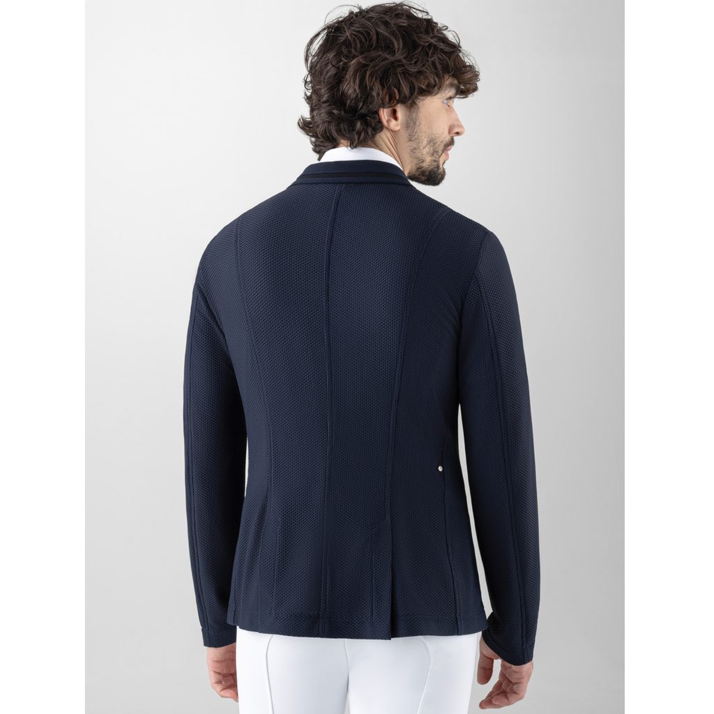 Pánské závodní sako Equiline v elegantním odstínu tmavě modré je perfektní volbou pro jezdce, kteří hledají lehkost, flexibilitu a maximální komfort. Díky inovativní Mesh tkanině je extrémně prodyšné, elastické a rychleschnoucí, což zajišťuje optimální termoregulaci i během náročných závodů. Sako je bez podšívky – extra vzdušnost a komfort. Vysoce prodyšný materiál pro maximální svěžest. Rychleschnoucí technologie udrží optimální pocit komfortu.