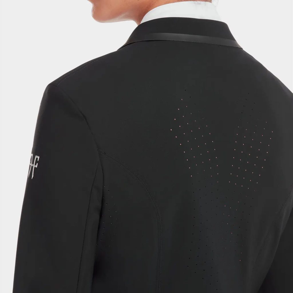 Navrženo pro maximální výkon a eleganci, dámské sako Aeromade kombinuje technické vlastnosti s moderním stylem. S perforacemi laserem na zádech, pod pažemi a v pase poskytuje optimální ventilaci pro pohodlí během náročného závodního dne. Zadní rozparky a magnetické, vyměnitelné knoflíky přinášejí praktický a rafinovaný vzhled, ideální pro jezdce v soutěžích.