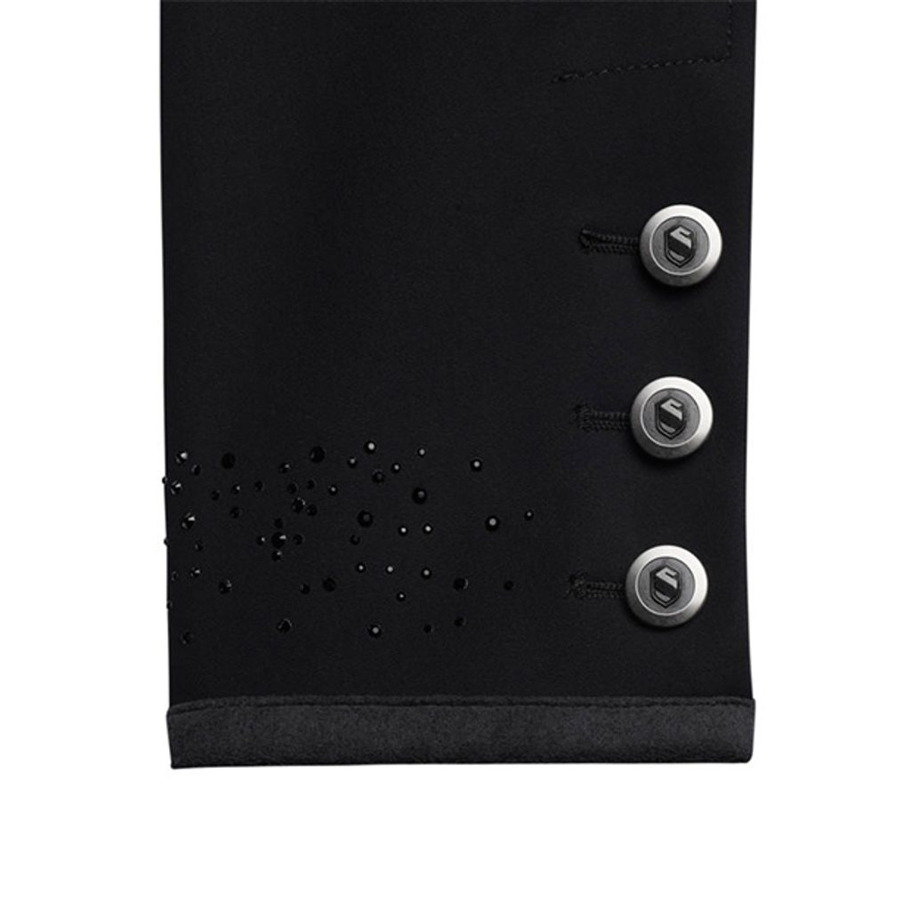 Dámské sako Samshield Victorine je navrženo pro maximální pohodlí jezdce. Asymetrický střih (sako je vepředu kratší než vzadu) zajišťuje, že sako perfektně padne,je elegantní a pohodlné. Je vyrobeno z vysoce prodyšného materiálu, který je zároveň elastický, velmi lehký, příjemný na dotek a také chrání proti UV paprskům. Sako je zdobeno kamínky Swarovski na rukávech, které už jen podtrhnout luxus tohoto saka. Barva: černá, tm.modrá. Velikosti: 36, 38, 40, 42, 44.