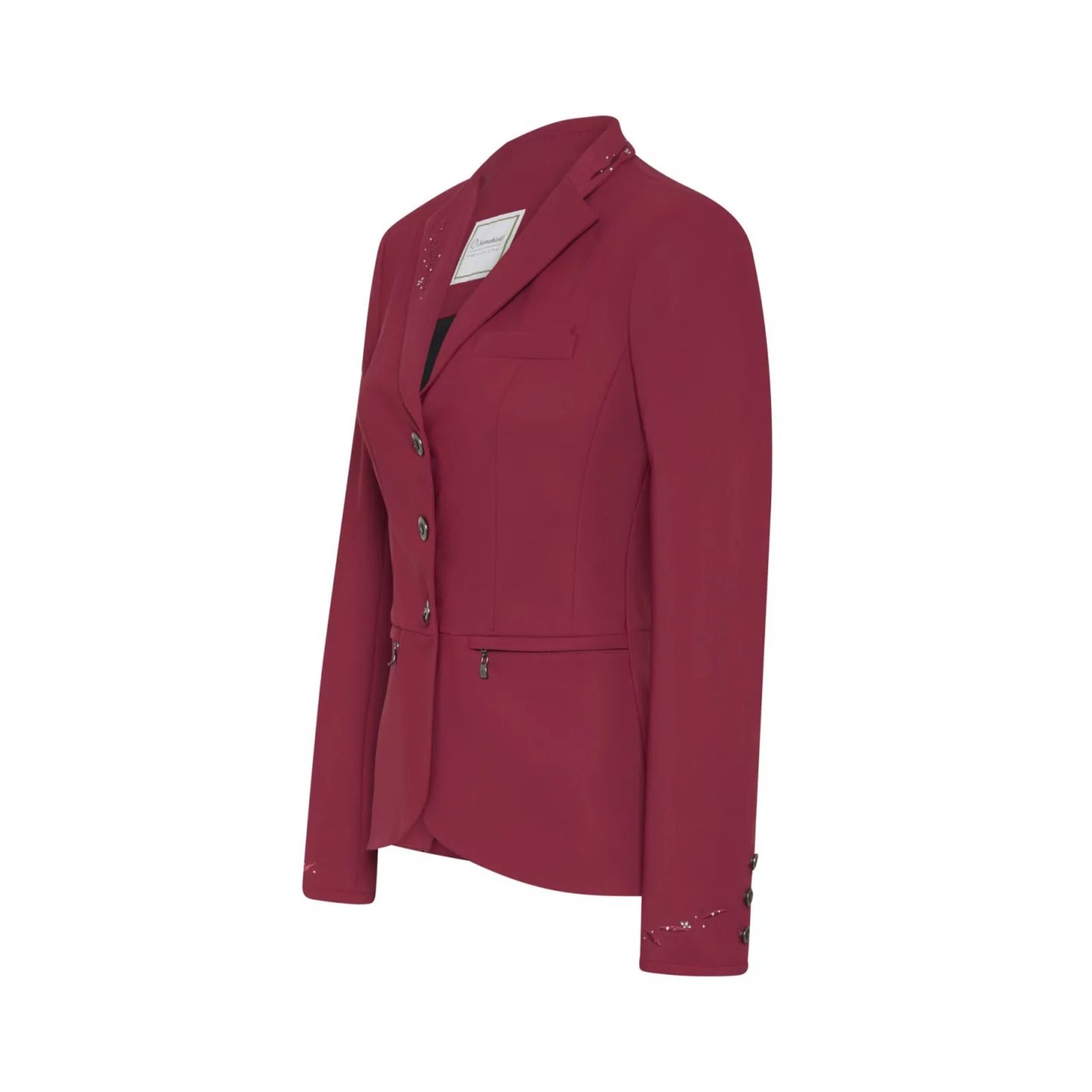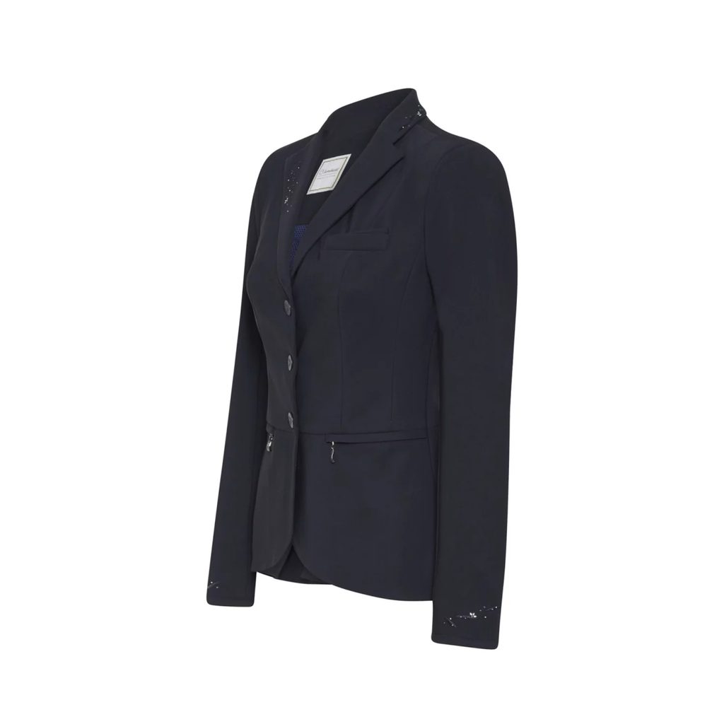 Sako zdobí krásné výšivky doplněné jedinečnými krystaly Swarovski. Ušito je z prodyšné, vysoce elastické tkaniny ve velmi lichotivém střihu. Aby vás sako nikdy neomezovalo při jízdě, je v přední části maličko kratší.