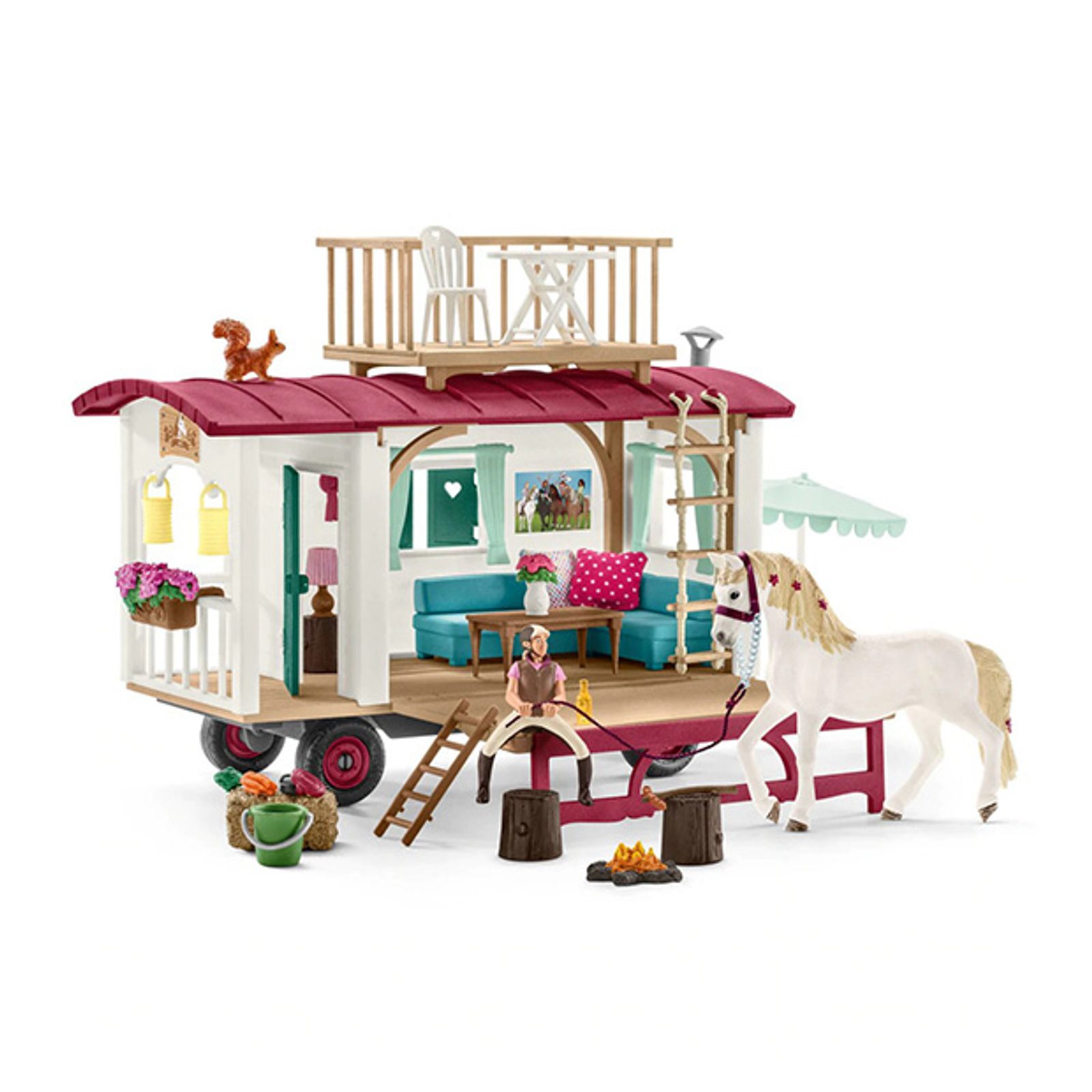 Balení obsahuje: 1x dívka, 1 x Andaluská kobyla, 1x veverka, 1x karavan, 2x lucerny, 1x žebřík, 1x židle, 1x slunečník, 1x stolek na terasu, 1x rozkládací pohovka, 1x konferenční stolek, 1x lampa, 1x květináč, 1x lanový žebřík, 2x vítězná stuha, 1x sedlo, 1x uzda, 1x otěže, 1x ohlávka, 1x jesle, 1x brána, 1 x hřeblo, 1x hřeben, 1 x balík sena, 1 kbelík, 1 x jablko, 2x polštáře, 1x táborák, 1x láhev, 2x grilovací bar s klobásou, 2x šálek, 2x hrnek, 1x klíč, 1x kytka v květináči, 3x kmen stromu, 1x nálepka, 1x montážní návod