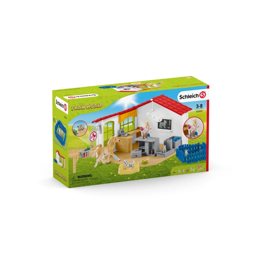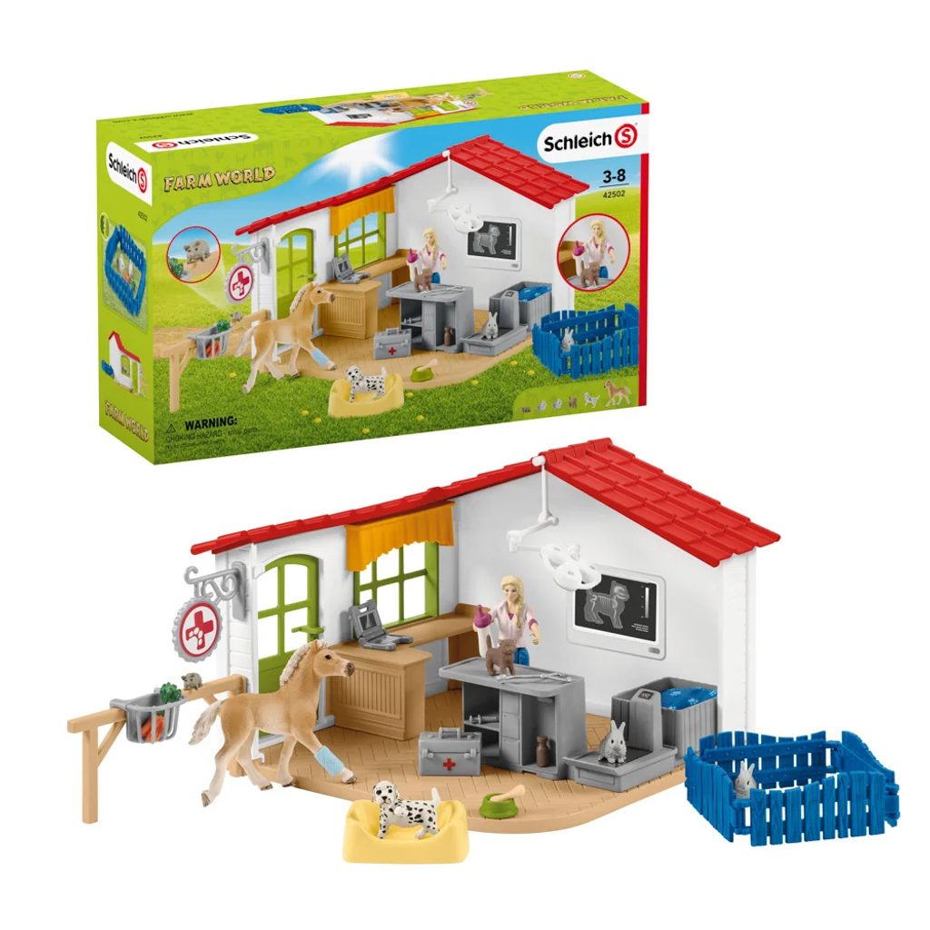 Ve veterinární ordinaci ze světa farmy Schleich® jsou všichni zvířecí pacienti láskyplně léčeni a ošetřováni, aby byli brzy zdraví. Veterinář se o to postará. Vždy má připravené správné vybavení. S pomocí rentgenového obrazu visícího na zdi může veterinář léčit své pacienty na vyšetřovacím stole a rychle vytáhne ze svého lékařského kufříku ten správný lék. Pomocí váhy může také zkontrolovat hmotnost králíků. Pak je čas na dalšího pacienta! Schleich® figurky jsou všechny modelovány v nejjemnějším detailu, láskyplně malované a povzbuzují děti k tomu, aby hrály a zároveň se učily.