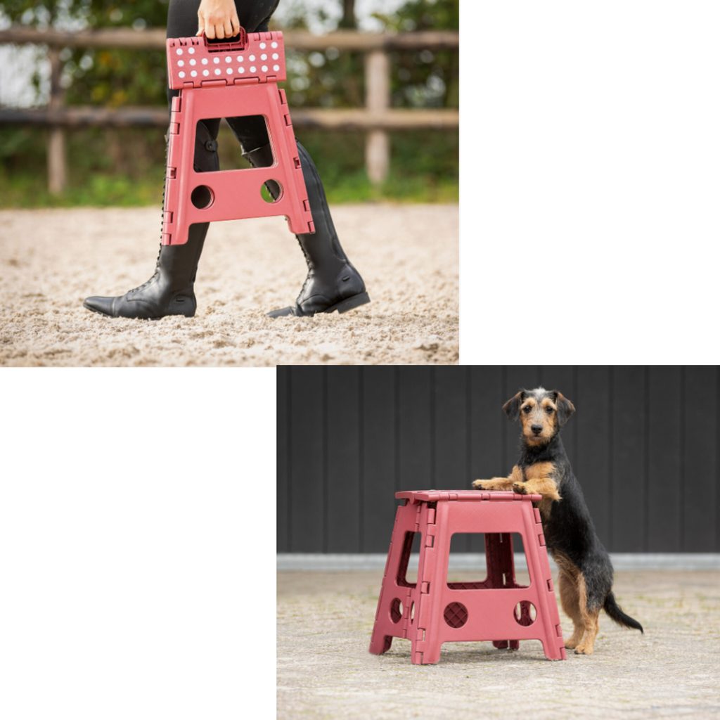 Velmi praktická skládací stolička vyrobená z odolného plastu, je vhodná pro sezení či stání, ideální pomocník do stáje i na závody. Usnadní nasedání, zaplétání hřívy, či umožní odpočinek. Ve složeném stavu je velmi skladná a uložíte ji opravdu na každé místo. Horní strana má protiskluzový povrch pro vaši vyšší bezpečnost.
