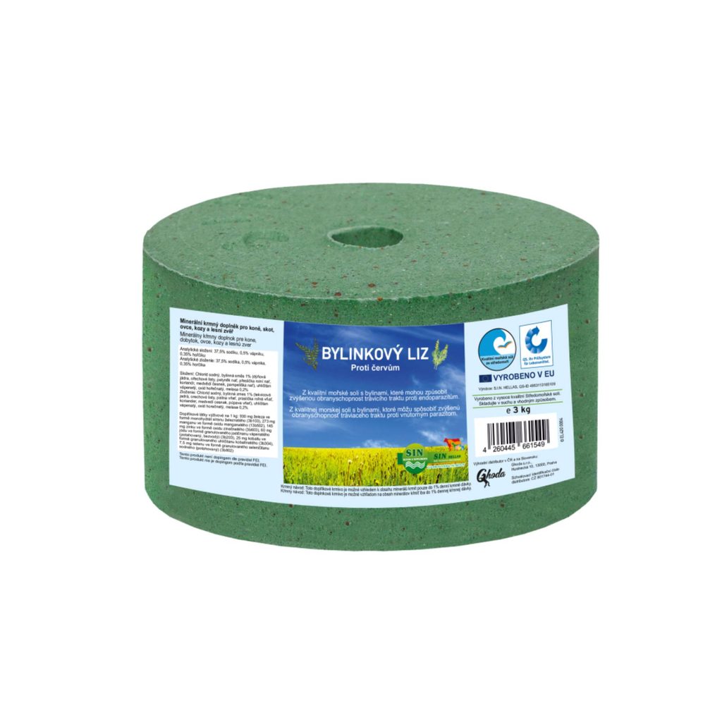 Minerální liz proti červům je obohacen speciálně vyvinutou bylinnou směsí a přirozeně tak posiluje střevní prostředí a přispívá tak k jeho odolnosti napadení endoparazity. Kromě soli, minerálních látek a stopových prvků obsahuje byliny s vysokým obsahem hořčin a tříslovin.