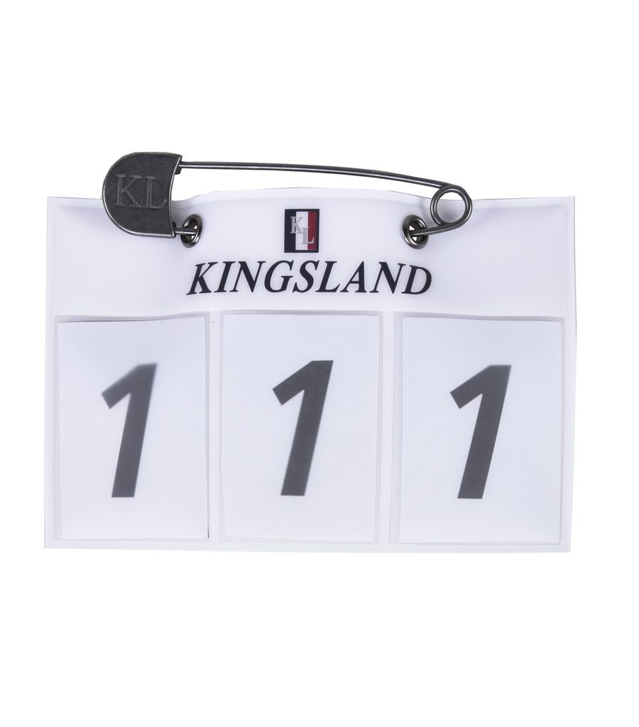 Třímístné startovní číslo od značky Kingsland vyrobeno z velmi odolného a kvalitního PVC. Připevňuje se na dečku s pomocí připínacího špendlíku na kterém je vyraženo logo Kingsland. Toto logo se nachází i v horní části pouzdra a elegantně doplňuje celkový desing startovního čísla.