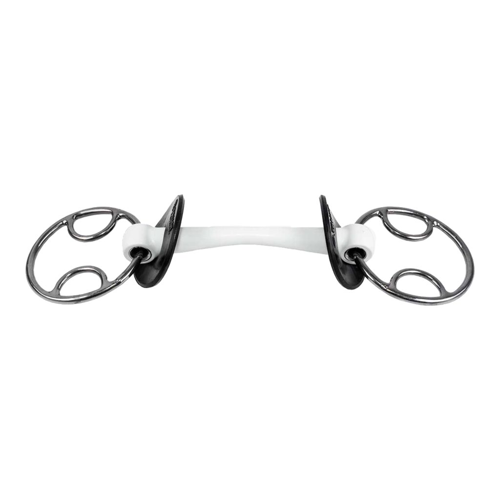Do vrchního malého očka připevníte lícnice a poté máte dvě možnosti uchycení otěží - buď do spodního malého očka, nebo do velkého kovového kroužku. Zapnutí otěží do spodního očka vytváří menší pákový efekt, přes velký kovový kroužek je zase vytvářen tlak na snížení hlavy. Kroužky jsou pohyblivé, díky tomu kůň udidlo lépe přijímá. Šířka 20 mm.