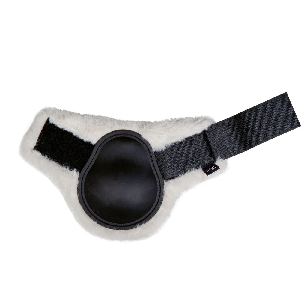 Anatomicky tvarované strouhačky pro ochranu zadních nohou. Podložené jsou celé umělém beránkem. Zapínají se na suchý zip, který je široký cca 5 centimetrů.