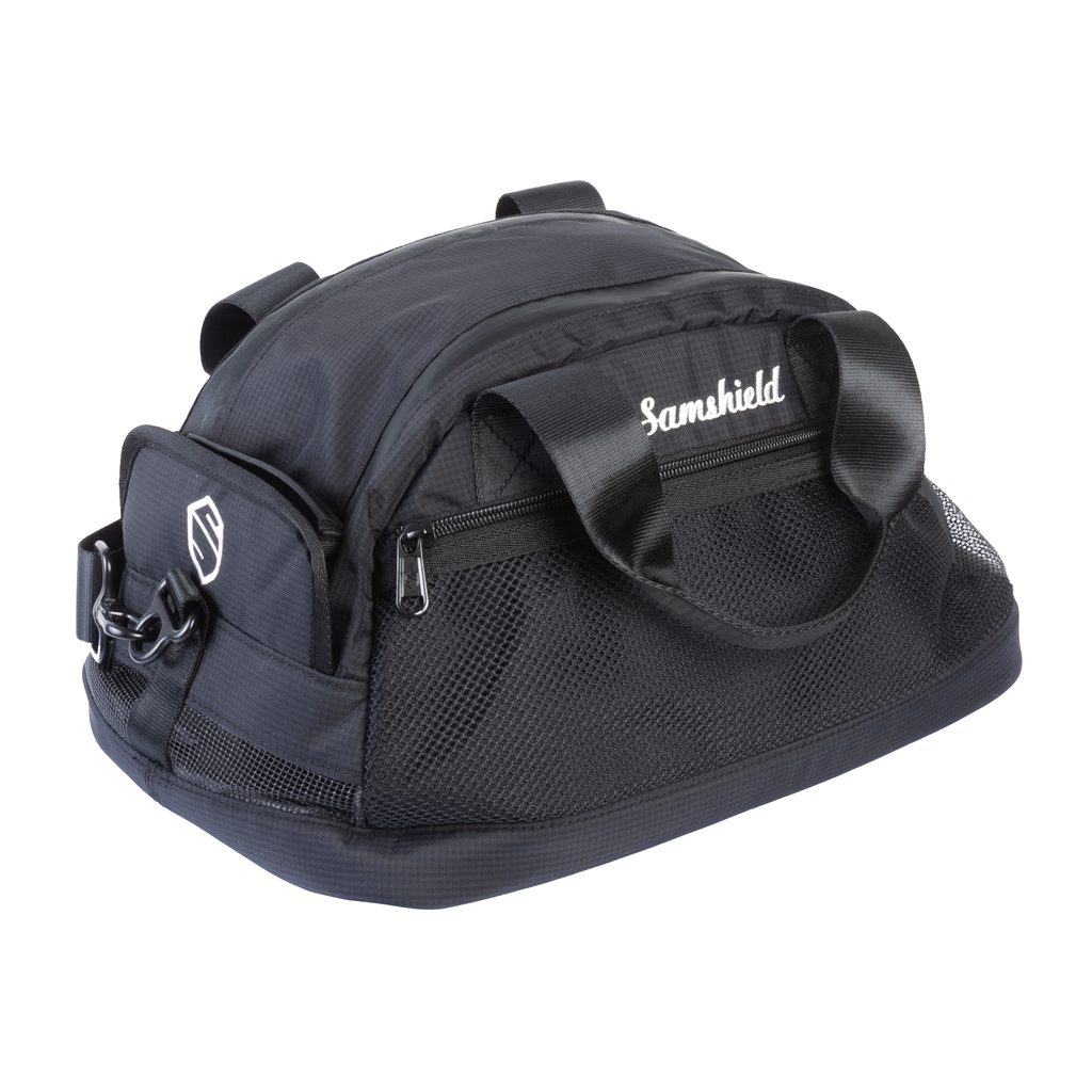 Elegantní a praktická taška pro přenášení či uskladnění vaší helmy. Vnitřní strana je z měkkého materiálu, takže nehrozí žádné poškrábání. Velmi snadno se s ní manipuluje, hlavní kapsa i menší kapsička se zapínají na zip. Přenášet ji můžete v ruce či přes rameno. Dno tašky má zvenčí 4 malé nožičky. A samozřejmě nechybí ani všitá mřížka pro odvětrávání. A to nejlepší na ní je, že opravdu velmi dobře vypadá.