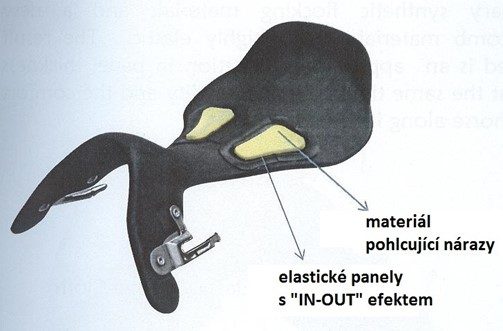 1) V kostře sedla jsou umístěny elastické panely naplněné speciálním materiálem, který pohlcuje nárazy. Panely jsou zabudovány v místě, kde se nacházejí jezdcovy sedací kosti. Umístění panelů se pochopitelně liší na kostře drezurního sedla a sedla skokového, jelikož v každém sedle jezdec sedí jinde. Tyto panely mají navíc díky své pružnosti jedinečnou vlastnost-umožní jezdci dostatečně hluboký sed, ale neposazují ho striktně jen dolů, ale tou pružností mu umožňují se v sedle pohybovat a „jít s pohybem“ jak je zrovna potřeba – tzv. „IN-OUT“ efekt. (Na rozdíl od klasických koster, kdy jsou v nejhlubším místě díry v kostře, do kterých jezdec zapadne a „utopí“ se v nich, nemůže se dobře hýbat a musí vyvinout určité úsilí aby se z té hluboké pozice dostal)