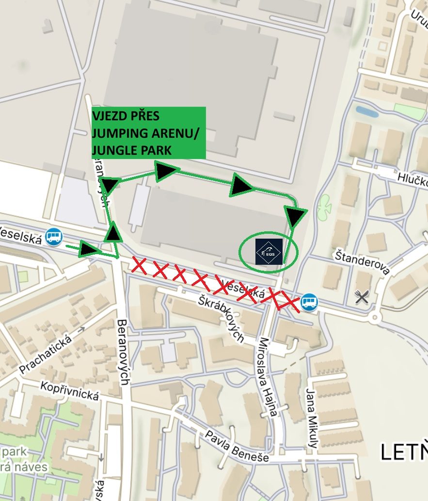 V době od 18/3 do 1/4 2026 se do naší EQUISERVIS prodejny Praha 9 Letňany dostanete přes označený vjezd do Jungle/Jump parku z ulice Beranových. Veselská ulice, kudy standardně přijíždíte bude v této době uzavřena.