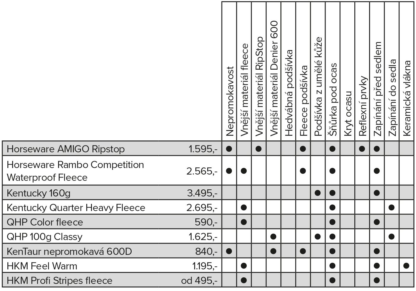 Bez zaváhání vám můžeme doporučit deky HKM Profi *EQS*. Jsou špičkou ve své cenové kategorii, na výběr máte z různých variant zateplení, v klasickém, velmi dobře padnoucím střihu, nebo ve verzi s odnímatelným krkem.