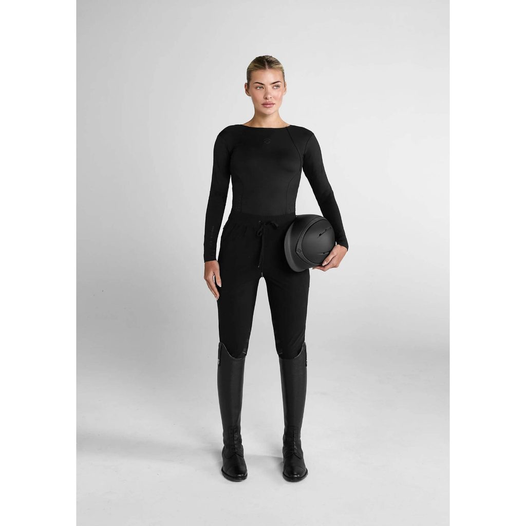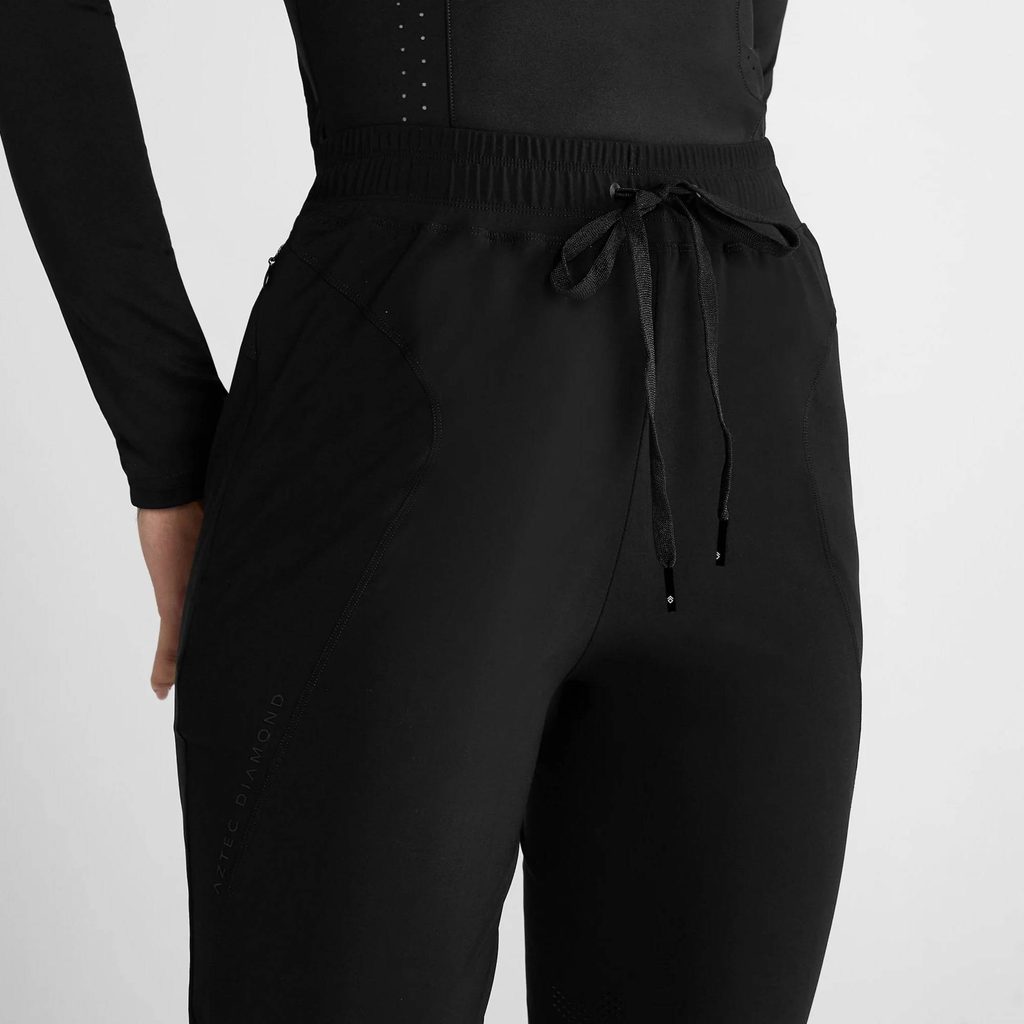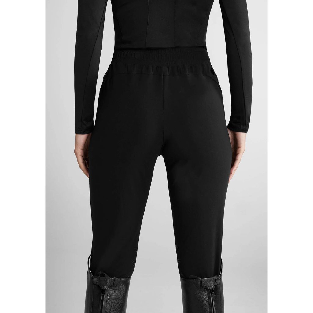 Jsou navrženy jako hybrid - spojují pohodlí tepláků s funkcemi jezdeckých rajtek pro zajištění vysokého komfortu jezdců. Ideální pro dny ve stáji, kdy potřebujete jezdecké oblečení ve volnějším a pohodlnějším střihu. Vyrobeny jsou z prémiové sportovní tkaniny s plným krytím. Jsou velmi prodyšné, spolehlivě odvádí pot a rychle schnou. 4 směrně elastický materiál zajišťuje vysokou svobodu pohybu. Kolenní gripy poskytují lepší stabilitu při jízdě na koni. Pro uložení vašich nezbytností poslouží boční kapsy na zip. Vysoký pas s elastickou šňůrkou nabízí optimální nastavení velikosti. Celkový vzhled doplňují decentní nápisy značky.