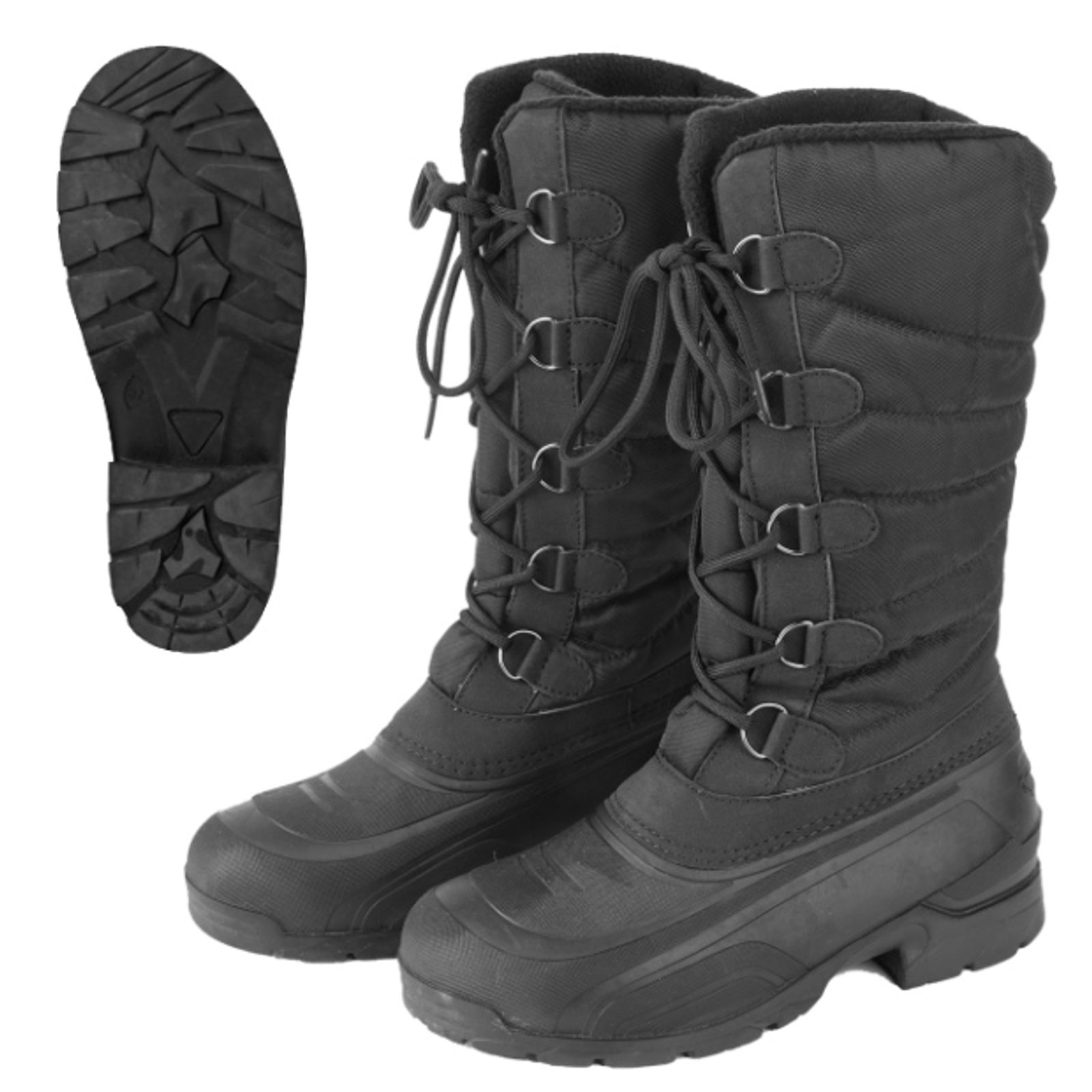 Vysoké termoboty, které udrží nohy v teple a suchu díky měkké podšívce, vysokému střihu a voděodolné části kolem chodidla. Hlavní výhody: odolný svrchní materiál, voděodolná spodní část, měkká přiléhavá podšívka, optimální pro chladné zimní dny, nastavitelná šířka v oblasti lýtek pomocí šněrování vpředu. Barva: černá. Velikosti: 36, 37, 38, 39, 40, 41, 42.