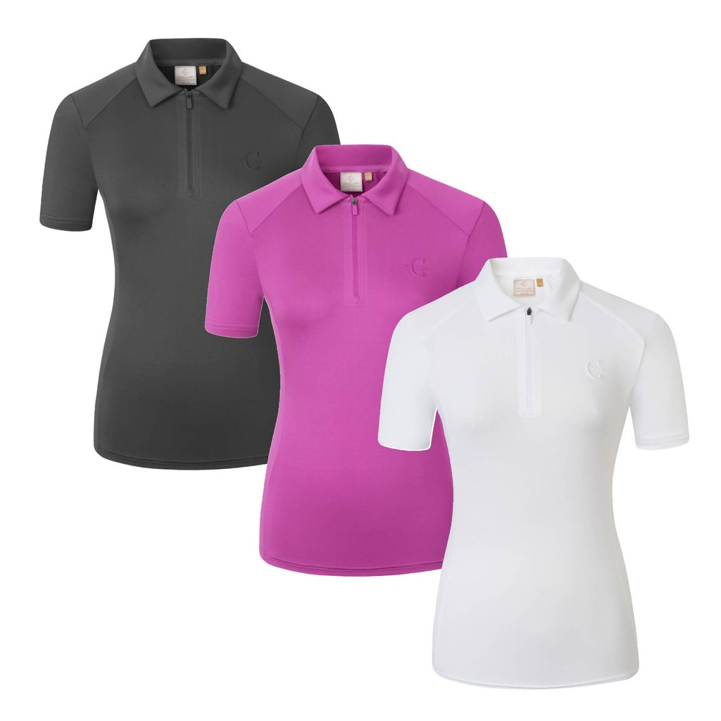 Super elastický materiál se přizpůsobí postavě a díky projmutému, ženskému střihu působí elegantně a zároveň sportovně. Optimalizovaná regulace vlhkosti pomáhá udržet příjemný pocit sucha i při vyšší fyzické aktivitě. Tričko je prodyšné, lehké a ideální do stáje, na vyjížďky i pro každodenní nošení v teplém počasí.