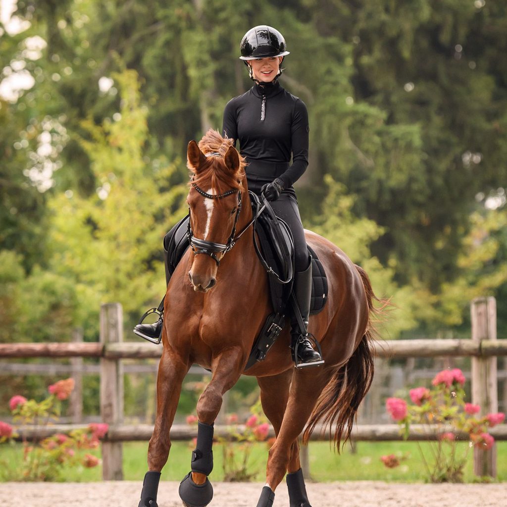 Zaujme na první pohled svým elegantním vzhledem a zároveň nabídne vysoký komfort při nošení. Díky projmutému střihu krásně kopíruje siluetu a působí žensky i sportovně zároveň – ideální volba jak do sedla, tak pro běžné nošení ve stáji.