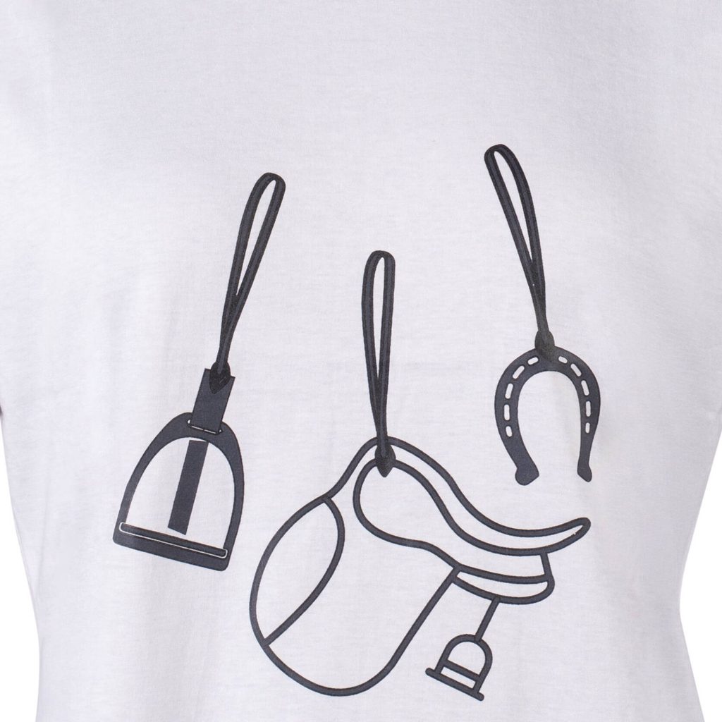 Tričko je vyrobeno z měkké přírodní bavlny, která je prodyšná, příjemná na dotek a pohodlná po celý den. Hlavním ozdobným prvkem je dekorativní potisk s jezdeckým motivem, který tričku dodává hravý a stylový vzhled. Díky tomu působí svěže, moderně a zároveň zůstává snadno kombinovatelné s dalším oblečením.