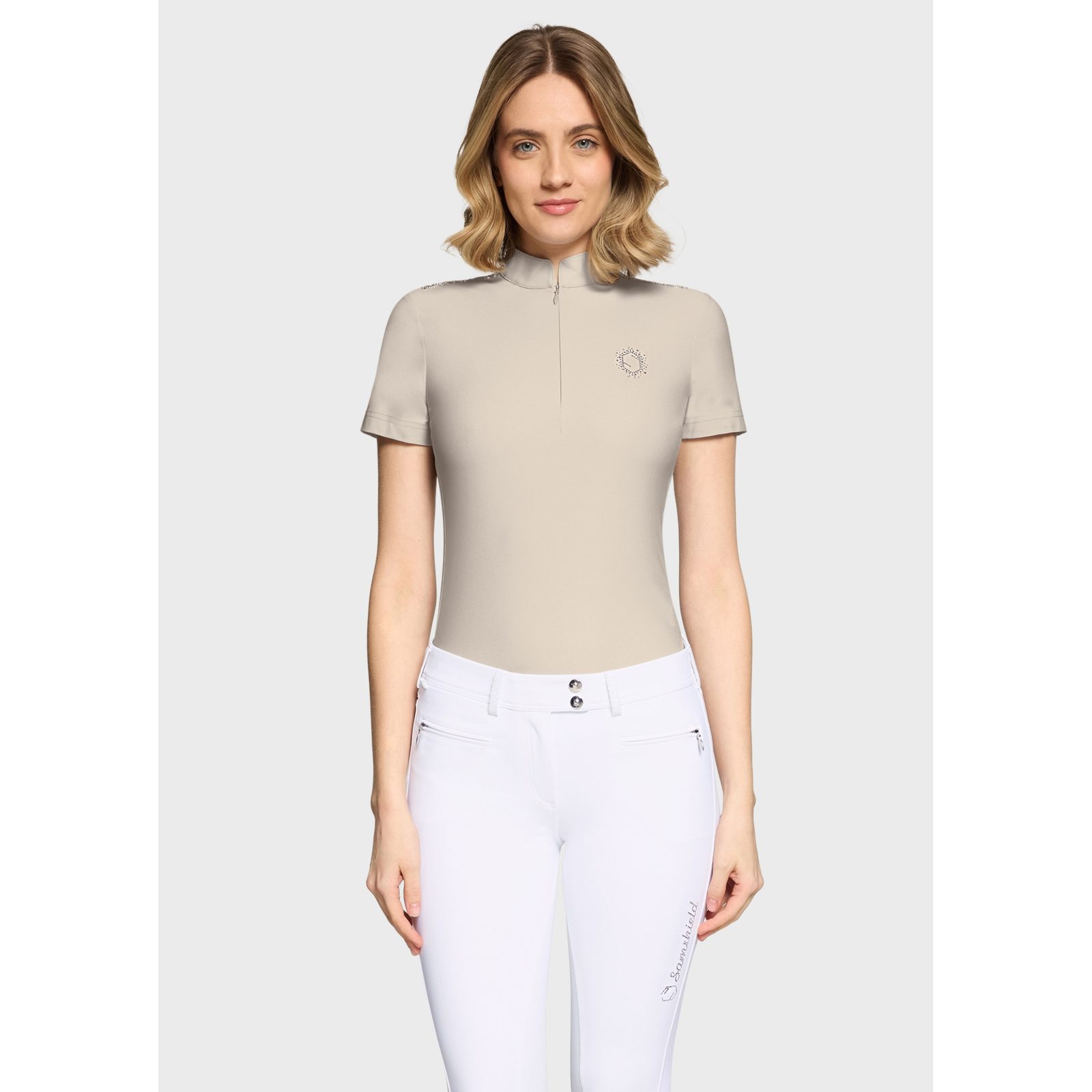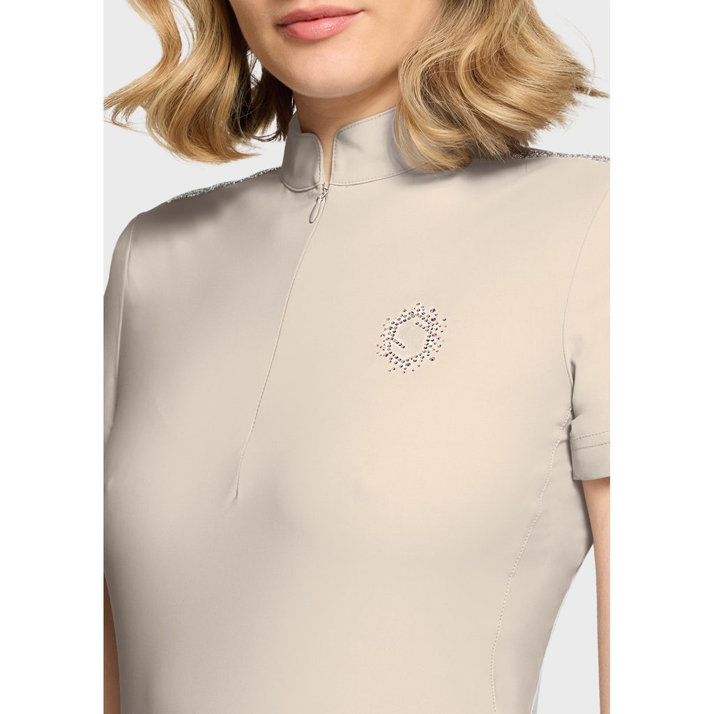 Tričko Bruna zaujme na první pohled svým propracovaným technickým designem, který doplňuje elegantní blason Swarovski® na hrudi a sofistikovaný skrytý zip s crystal fabric detailem. Díky tomu působí luxusně a zároveň maximálně funkčně.