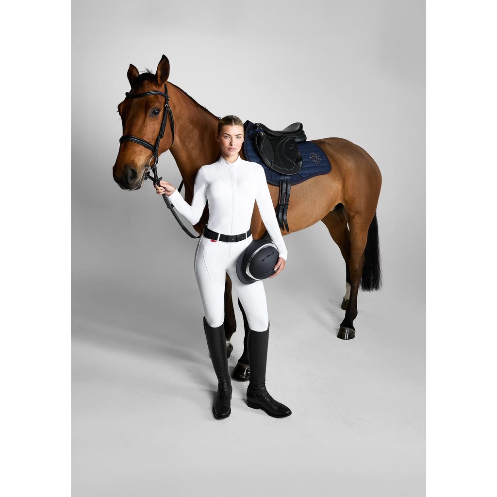 Je vyrobeno z 4 směrně strečové tkaniny, která se optimálně přizpůsobí a neomezuje v pohybu. Je velmi lehké, měkké, prodyšné a s funkcí rychlého schnutí. Spolehlivě odvádí pot od těla a zanechá vás v suchu i během těch nejnáročnějších výkonů. Díky své nemačkavosti zaručuje neustále upravený vzhled. Je navrženo s dlouhým rukávem a zapíná se na skryté patentky. Celkový vzhled doplňují decentní loga značky.