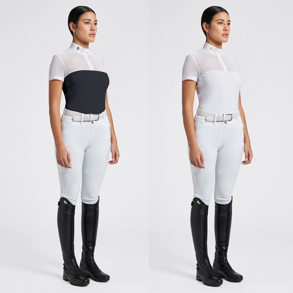 Tričko Cavalleria Toscana kombinuje eleganci s technickými vlastnostmi, které ocení každá jezdkyně. Vyrobeno z vysoce kvalitních materiálů, je navrženo tak, aby poskytovalo maximální komfort a volnost pohybu i během náročných závodů. Materiál je prodyšný, rychleschnoucí a odvádí vlhkost, takže se budete cítit svěže po celý den.
