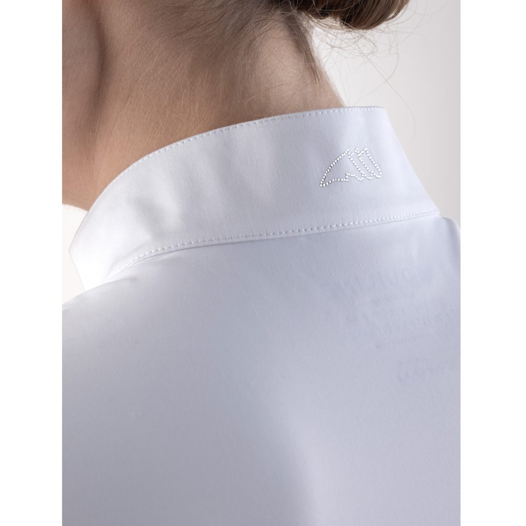 Tričko je vybaveno praktickým zapínáním na skryté knoflíčky u krku a ozdobeno jemnými detaily, které mu dodávají luxusní vzhled. Na zadní straně límečku je umístěno logo Equiline z krystalových kamínků.