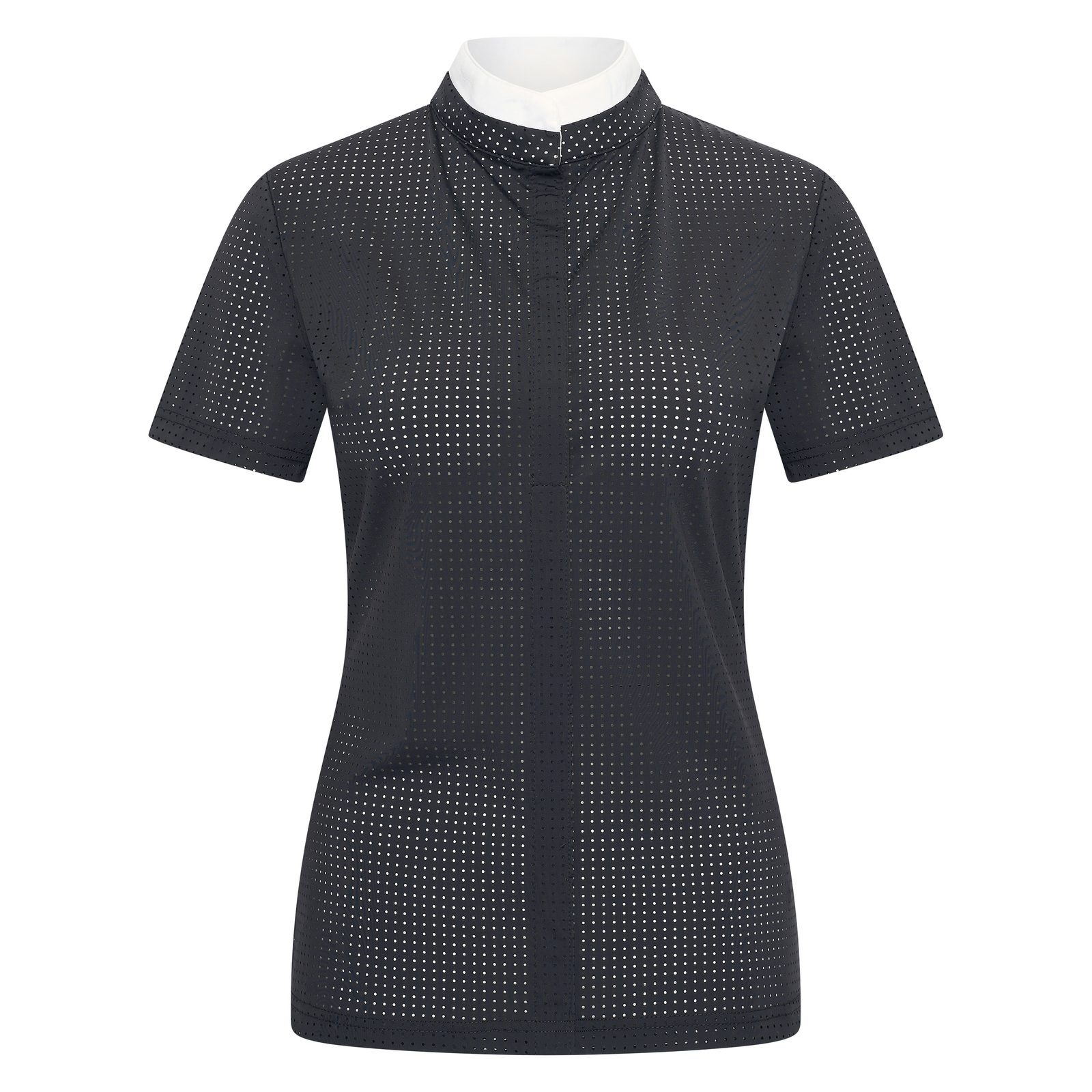 Je vyrobeno z vysoce kvalitní perforované látky. Bez problému kombinuje funkčnost a styl díky své lehkosti a prodyšnosti. Je navrženo v elegantním střihu s krátkým rukávem a zapínáním na knoflíky. Nabízí sofistikovaný vzhled perfektní pro každou soutěž. Celkový vzhled doplňuje stojáček s patentkami a logo značky.