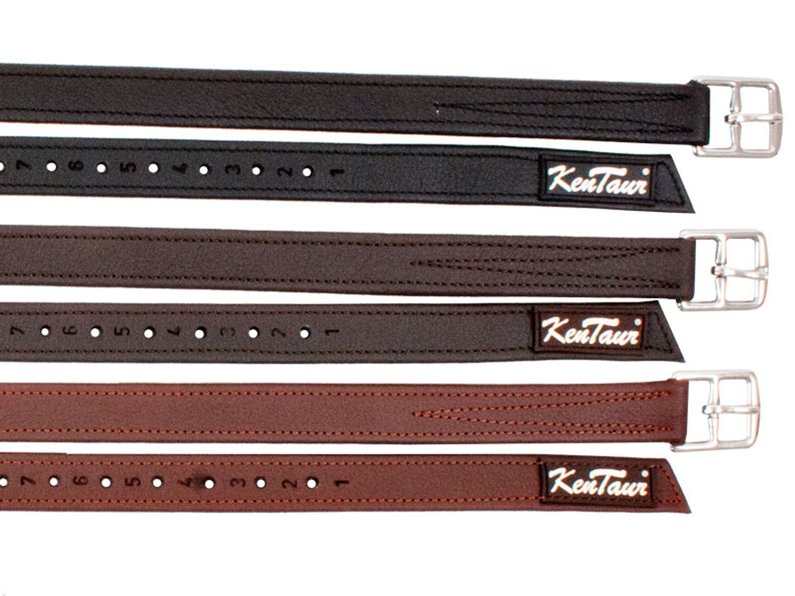 Nylonové třmenové řemeny, obalené v měkkém koženém obalu a prošité. Značková tuzemská výroba KenTaur. Téměř se nevytahují. Barvy černá, hnědá a tabák. Délky Pony, 140 a 150 cm