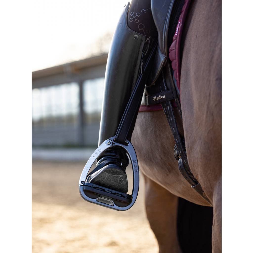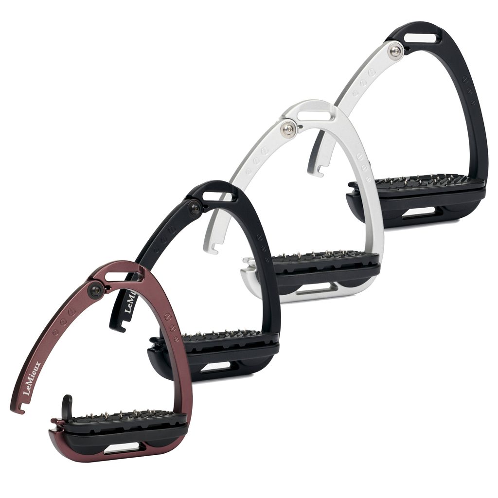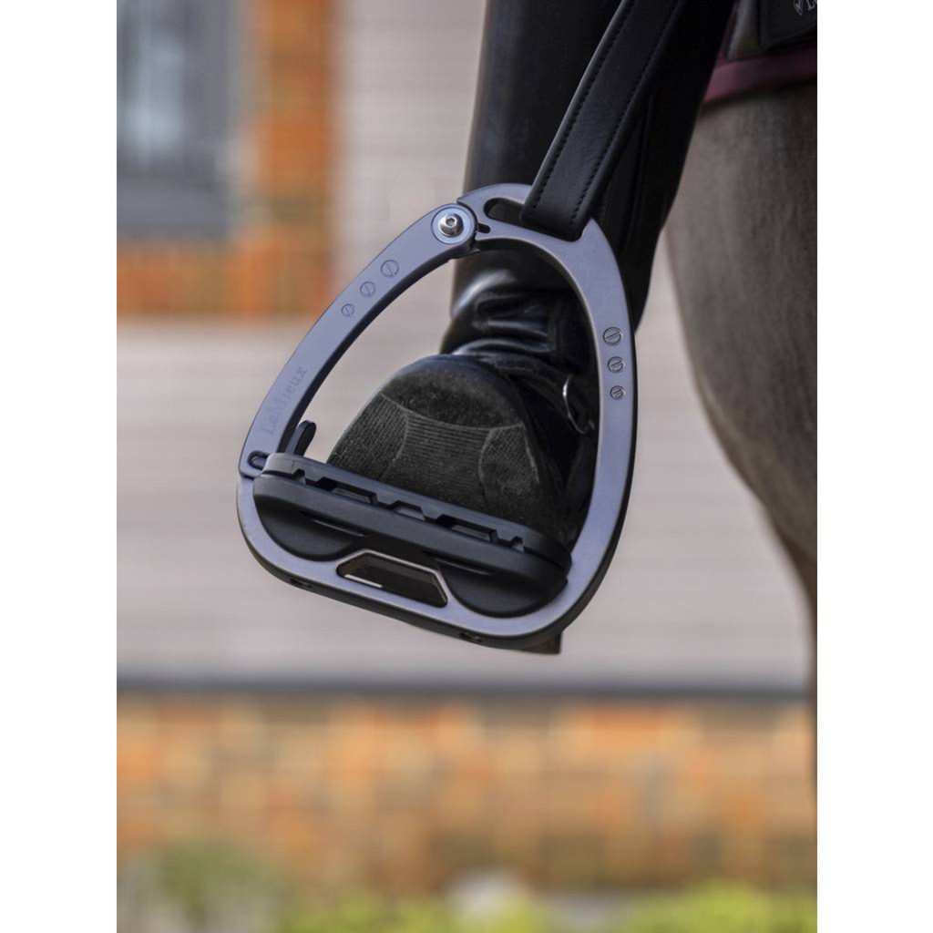 Třmeny Vector Balance s vyklápěcím ramenem - kombinují bezpečnost, lehkost, podporu správné pozice nohy jezdce, tlumení nárazů.