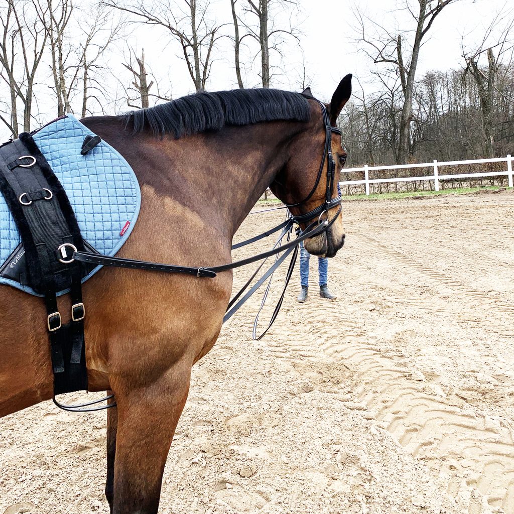 Trojúhelníkové vyvazovací otěže, které jsou primárně vhodné na lonžování.