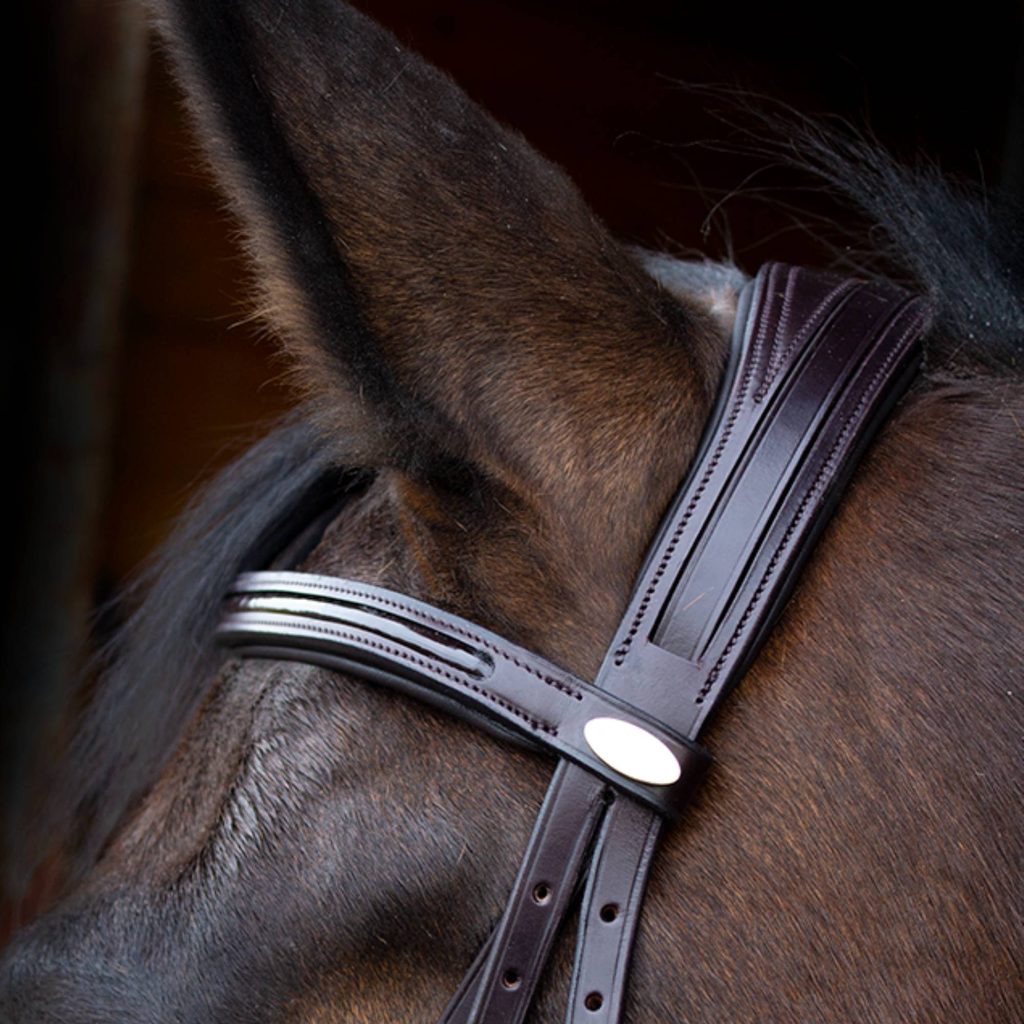 Díky anatomicky tvarovanému nátylníku se dokonale přizpůsobí hlavě koně a rovnoměrně rozkládá tlak, čímž zajišťuje maximální pohodlí i při delším ježdění. Měkce vypolstrovaný anglický nánosník zvyšuje komfort a zabraňuje otlakům.