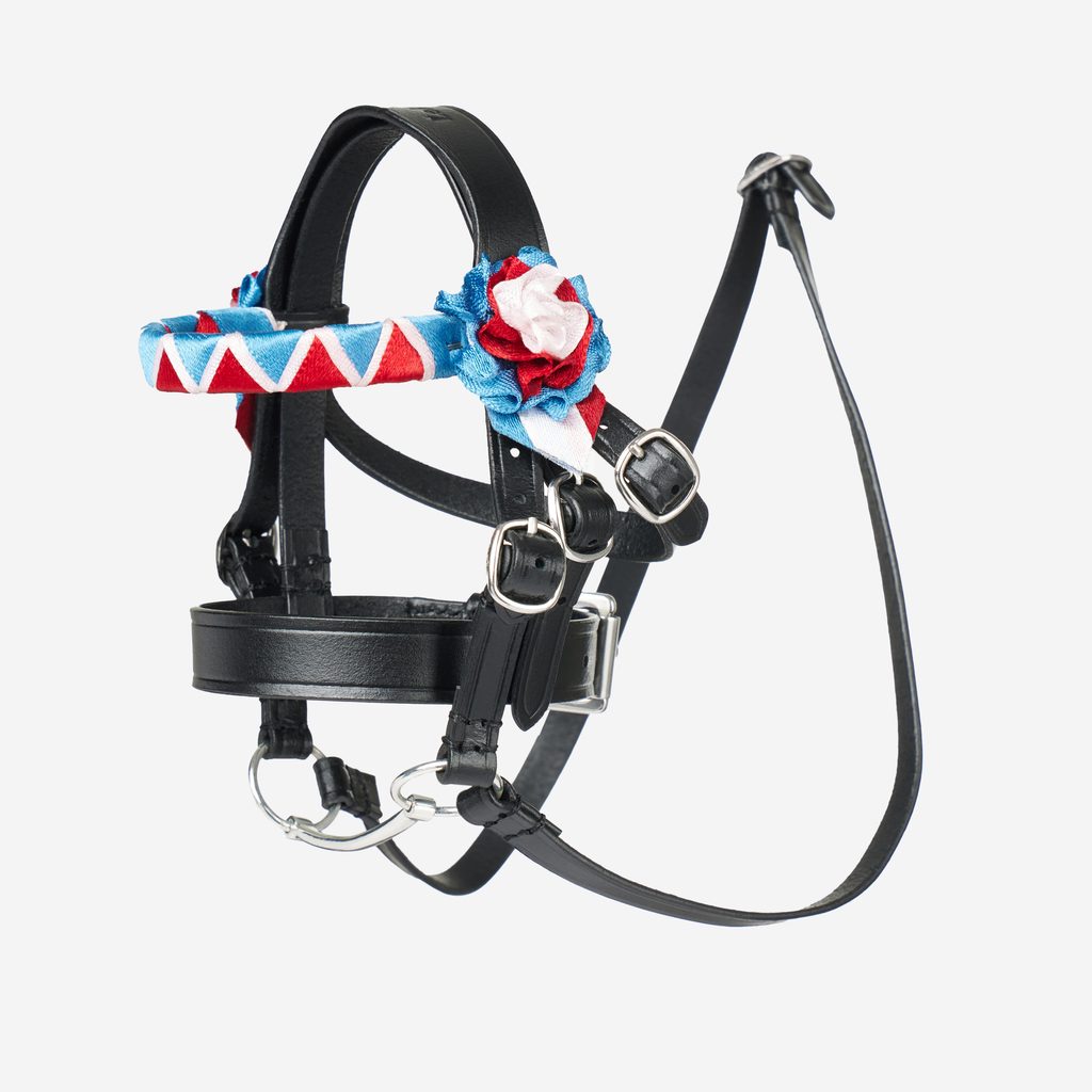 Uzdečka Showing je vyrobená z pravé kůže, má nastavitelné přezky, kovové udidlo a také kožené otěže.