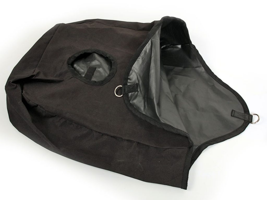 Závěsný nylonový vak na seno. Praktická pomůcka pro manipulaci se senem, k zavěšení do boxu, výběhu, pro transport apod. Barva: černá. Velikost: výška 65 cm a šířka 50 cm.