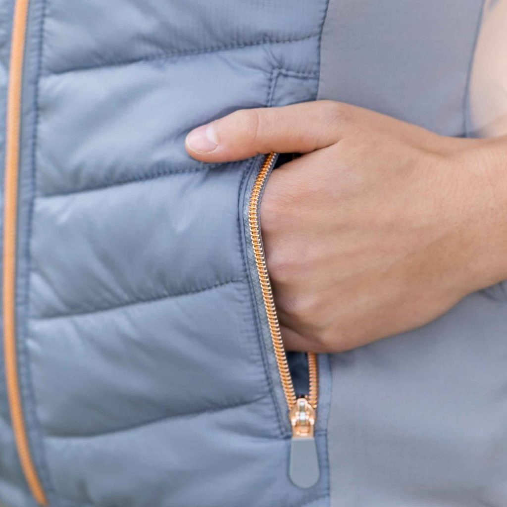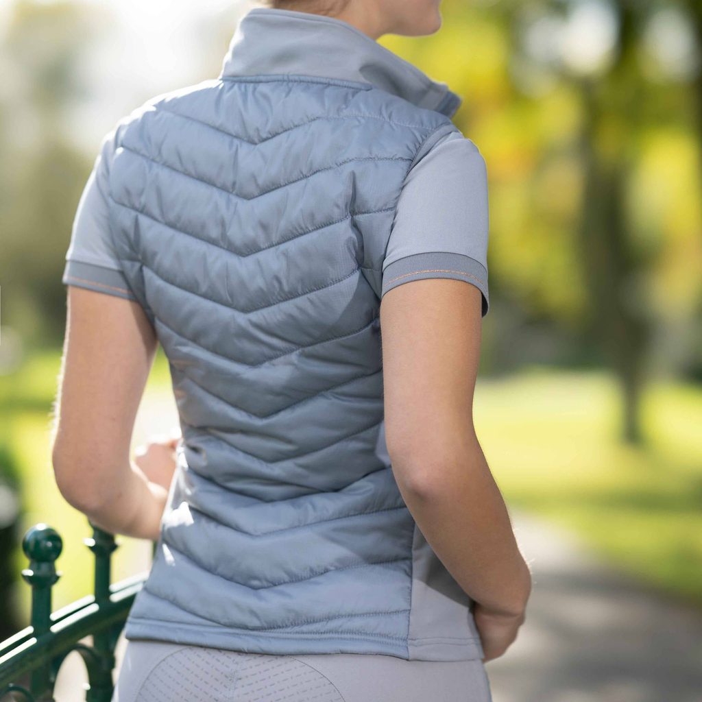 Díky přednímu a zadnímu prošívání s výplní je vysoce hřejivá, ale zároveň prodyšná. Má dvě přední kapsy na zip pro uložení veškerých nezbytností. Tenčí elastická tkanina na bocích zaručuje volnost pohybu. Díky dokonalému střihu je obzvláště pohodlná na nošení při jízdě na koni i ve volném čase. Celkový design doplňuje malý stojáček.