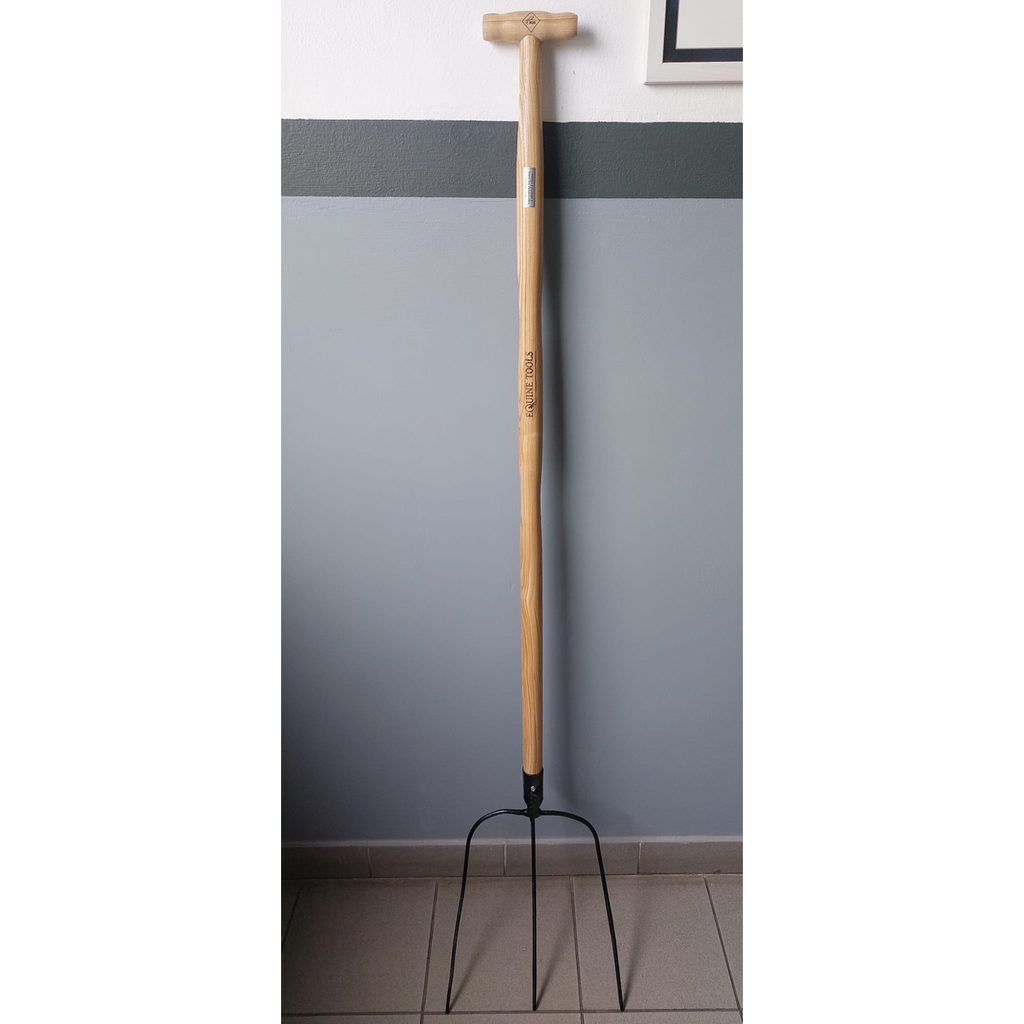 Vidle 3 hroté kované. Jasanová násada, délka 130cm je doplněna T ručkou pro lepší možnost úchopu nářadí. Násada je ergonomicky tvarovaná, odlehčená a ošetřená transparentním lakem/ tmavým olejovoskem.