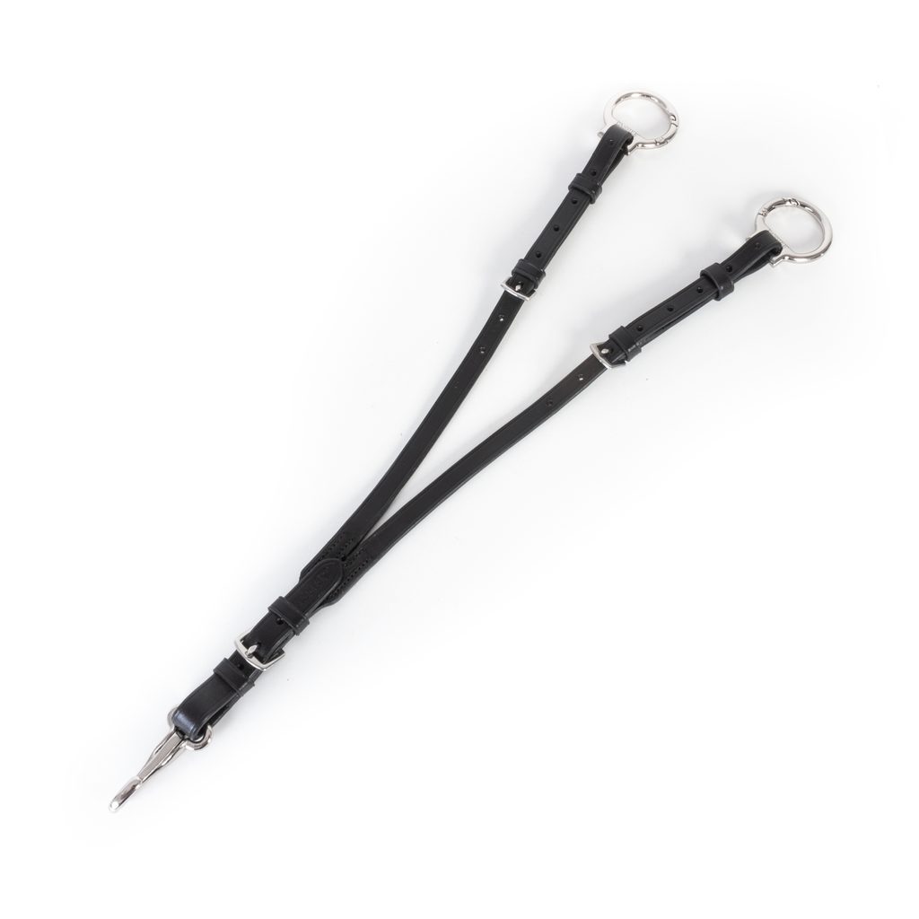 Tato martingalová vidlice má karabinku pro připnutí k podbřišníku. Díky dvěma kroužkům vidlici lze připevnit na otěže. Vidlice je délkově nasavitelná.
