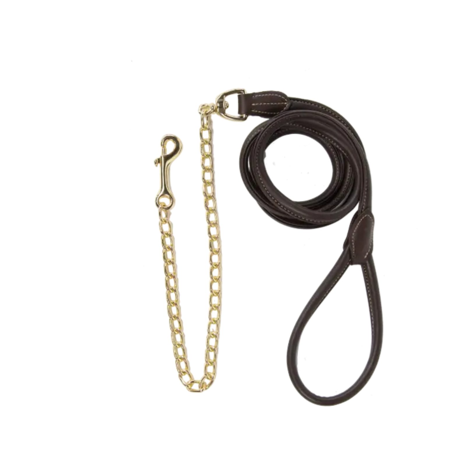 Součástí vodítka je pevný řetízek z mosazného kování, který umožňuje lepší kontrolu nad koněm v situacích, kdy je potřeba přesnější vedení. Na konci vodítka se nachází praktické poutko pro pohodlné držení.