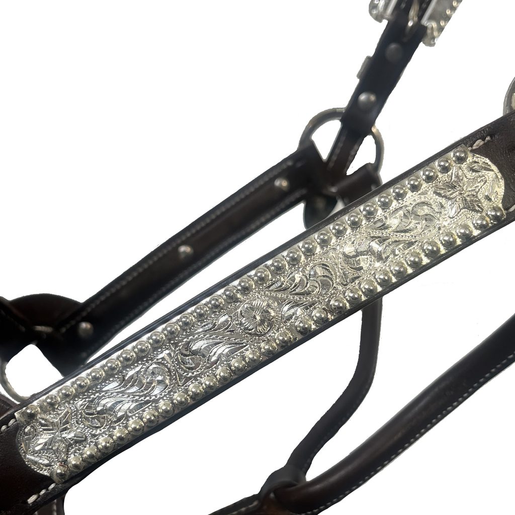 Je vyrobena z vysoce kvalitní kůže. Díky možnosti nastavení je velmi variabilní a přizpůsobíte ji tak dokonale vašemu koni. Je vysoce kvalitní a odolná. Celkový design doplňuje postříbřené kování, které je zdobeno poutavými ornamenty s motivy květin a hvězd. Zdobení se stejnými vygravírovanými motivy nalezneme na nánosníku a lícnicích. Velmi vhodná na halter, nebo na jiné závody a show.