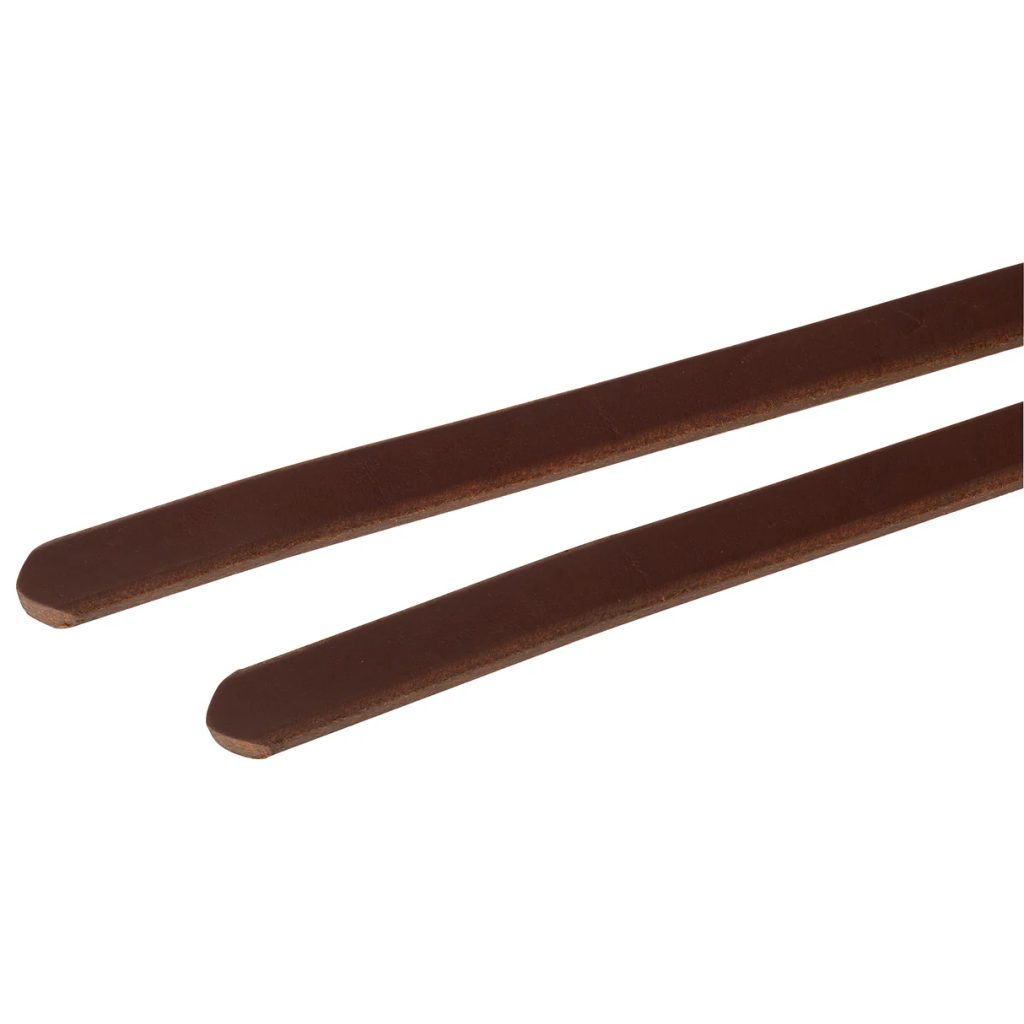 Každý pár otěží je ručně vyrovnaný a sladěný, aby obě strany měly stejnou váhu i cit – něco, co ocení každý jezdec, který potřebuje přesné a konzistentní pomůcky. Pečlivě zkosené a vyhlazené okraje poskytují hladký dotek, který je příjemný pro ruce i během dlouhých hodin v sedle. Tradiční water tie zakončení zaručuje jisté a spolehlivé uchycení k udidlu.